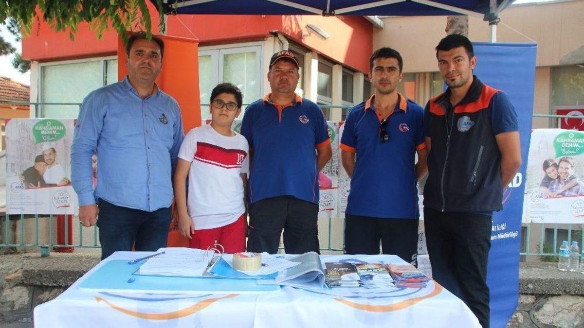 Bilecik İl Afet ve Acil Durum Müdürlüğü (AFAD) tarafından ‘O Kahraman Benim’ Projesi kapsamında stant açıldı.15 Temmuz Milli Birlik ve Beraberlik Günü nedeniyle AFAD Bilecik İl Müdürlüğü tarafından etkinlik düzenledi. Cumhuriyet Meydanında 15-16 Temmuz tarihleri arasında açık kalacak olan ‘O kahraman Benim’ projesi kapsamında stant açtı. Açılan stantta kayıt yaptıran vatandaşlar ‘AFAD Gönüllüsü’ oldu. Konu hakkında İHA muhabire açıklama yapan AFAD Bilecik İl Müdürü Mehmet Hayri Demirel, AFAD Başkanlığı tarafından başlatılan “O Kahraman Benim” projesi kapsamında AFAD Gönüllülerinin oluşturulduğunu belirtti. Demirel, “15-16 Temmuz 2017 tarihlerinde Cumhuriyet Meydanı ve ilimizin bazı yerlerinde gönüllü kayıtlarımız devam edecek. ‘O Kahraman Benim’ projesi kapsamında gönüllülerimizin kaydını yaparak, artık ilimizde gönüllü sisteminden geçilerek. Her ilimizde AFAD gönüllüsü olacak. Herhangi bir AFAD ve acil durumlarda bu gönüllü arkadaşlarımıza önceden eğitim verilerek olaylarda destek olunacak. Bu gönüllülere daha sonra basit arama kurtarma, ilk yardım, yangın gibi konularda eğitim verilecek. Daha sonra pratik ve uygulama eğitimlerinin ardından sertifika verilecek. Acil durumlarda bu gönüllülerimiz ekiplerimize yardımcı olacak” dedi.
