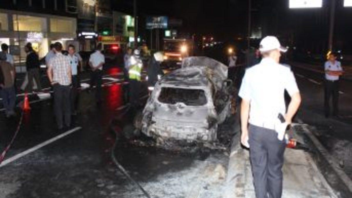 Başakşehir’de kontrolden çıkan araç, yol üzerindeki demir parmaklıklara çarptı. Çarpmanın etkisiyle alev alarak yanan araçta bir kişi öldü, bir kişi ise yaralandı.