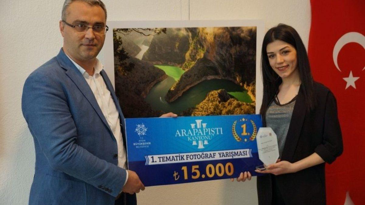 Bozdoğan’da bulunan ‘Arapapıştı Kanyonu’nu tanıtmak amacıyla Aydın Büyükşehir Belediyesi tarafından bu yıl 1’incisi düzenlenen fotoğraf yarışmasında dereceye giren fotoğrafçılara ödülleri verildi.213 fotoğrafçının 785 fotoğrafının katıldığı yarışmada sergilenmeye layık örülen 26 eser Vali Recep Yazıcıoğlu Kültür Merkezi’nde ziyaretçilerin beğenisine sunuldu. Yarışmada ilk üç sırayı elde eden fotoğrafçılara ödülleri sergi açılışının ardından takdim edildi.Sergi açılışı öncesi Aydın Büyükşehir Belediyesi’nde görevli tarihçi Bahar Güzel Arapapıştı Kanyonu hakkında bilgilendirmede bulundu.Büyükşehir Belediyesi olarak kültürel ve sosyal anlamdaki bütün projeleri tek tek hayata geçirdiklerini belirten Aydın Büyükşehir Belediyesi Meclis Üyesi ve Başkanvekili Barış Altıntaş, “Kararlıkla üzerinde durduğumuz eko turizm projesi olan Arapapıştı Kanyonu ile ilgili fotoğraf yarışmasında 213 fotoğrafçımız 785 fotoğraf ile katılım sağladı. Bugün açacağımız sergide dereceye giren 26 adet fotoğraf sergiliyoruz. Emeği geçen fotoğrafçı arkadaşlarımıza ve jüri üyelerine çok teşekkür ediyoruz” dedi.Yapılan sergi açılışının ardından başkanvekili Altıntaş ve beraberindeki heyet sergiyi gezerek fotoğraflar hakkında bilgi aldı. Daha sonra yarışmada derece elden birinci Adnan Teymur’a 15 bin, ikinci Mehmet Öztürk’e 10 bin, üçüncü Murat Bakmaz’a 5 bin liralık temsili çekleri verildi. Yarışmada ayrıca 3 ayrı fotoğrafçıya da 2’şer bin lira mansiyon ödülü verildi. Ödül töreni ve sergi açılışı zeybek gösterileri ile sona erdi.Ödül törenine Aydın Büyükşehir Belediyesi Meclis Üyesi ve Başkanvekili Barış Altıntaş, Aydın Gazeteciler Cemiyeti Başkanı Semra Şener ile birçok Aydın Büyükşehir Belediyesi Daire Başkanları ve vatandaşlar katıldı.