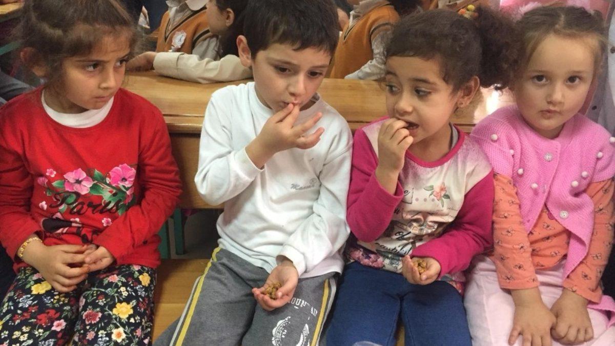 Ordu’nun Çaybaşı’na bağlı Aşıklı Köyü’nde öğrenimlerine devam eden öğrenciler ilk defa leblebinin tadına baktı.