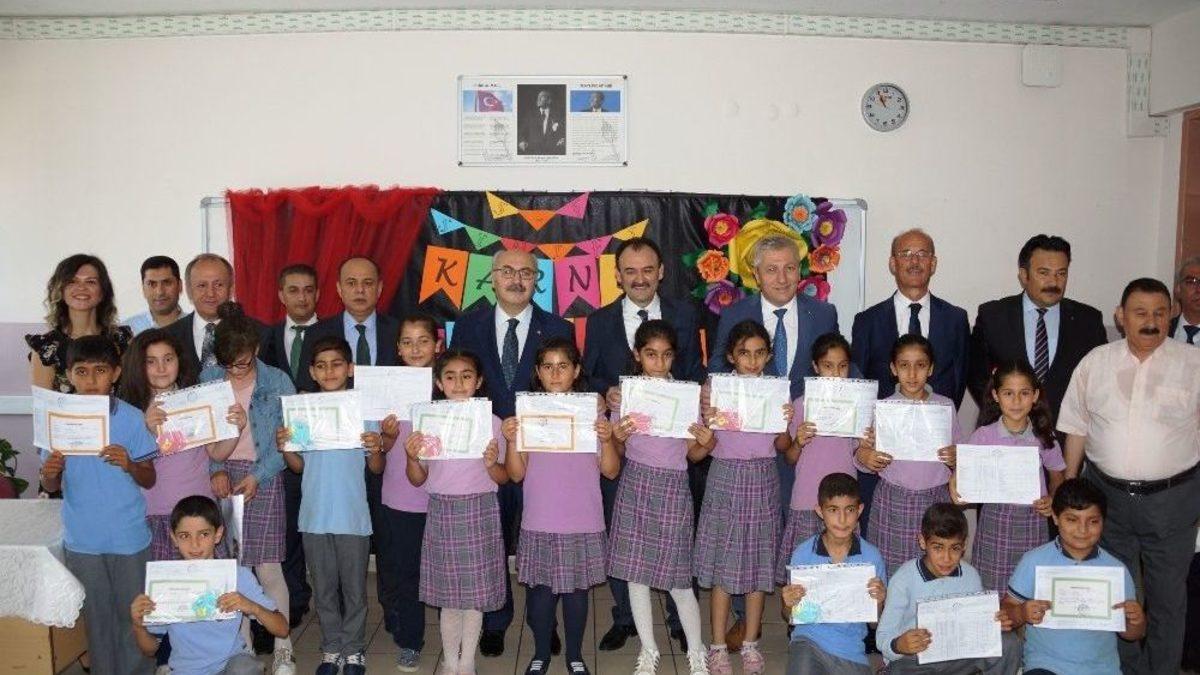 Aydın’da 175 bin öğrenci 2017-2018 eğitim öğretim döneminin sona ermesi ile karne sevinci yaşadı.Aydın İl Milli Eğitim Müdürlüğü tarafından Osman Yozgatlı Ortaokulu’nda düzenlenen karne töreninde, öğrenciler karnelerini Aydın Valisi Yavuz Selim Köşger’in elinden aldı. Vali Köşger ve beraberindeki protokol öğrencilerin karnelerini ve hediyelerini verdi. Vali Köşger karneleri verdikten sonra öğrencilerle yaptığı sohbette yaz tatilinde bol bol kitap okumalarını tavsiye etti. Osman Yozgatlı Ortaokulu 5-D sınıfı öğrencileri tarafından Vali Köşger’e Atatürk portresi hediye edildi.2017-2018 Eğitim-Öğretim yılını başarı ile tamamladıklarını belirten Aydın Valisi Yavuz Selim Köşger, “175 bin öğrencimiz ve 17 bin öğretmenimiz bugün itibari ile eğitim faaliyetlerinin okul kısmı bitmiş oldu. Öğretmenlerimizin eğitimle ilgili seminer faaliyetleri var. Bu eğitim öğretim yılında emeği geçen herkese teşekkür ediyorum. Çocuklarımız yaz döneminde dinlendikten sonra yeni bir eğitim yılına başlayacağız. Türkiye dünya ülkeleri arasında genç nüfusu oldukça iyi ülkelerden bir tanesidir. Her zaman ifade ettiğimiz bir şey var. Bizim en önemli servetimiz, insanımız iyi eğitilmiş genç nüfusumuzdur. Genç nüfusumuzun daha iyi eğitilebilmesi için seviyemizin daha iyi hale gelebilmemiz için eğitimin çok önemli bir yeri vardır” dedi.Karne dağıtım törenine Aydın Valisi Yavuz Selim Köşger, Aydın İl Milli Eğitim Müdürü Bilal Yılmaz Çandıroğlu, Efeler Kaymakamı İzzettin Sevgili, Efeler İlçe Milli Eğitim Müdürü Mustafa Özmen, Aydın İl Sağlık Müdürü Dr. Fevzi Yavuzyılmaz ve Aydın İl Milli Eğitim Müdür Yardımcısı Bahameddin Karaköse katıldı.