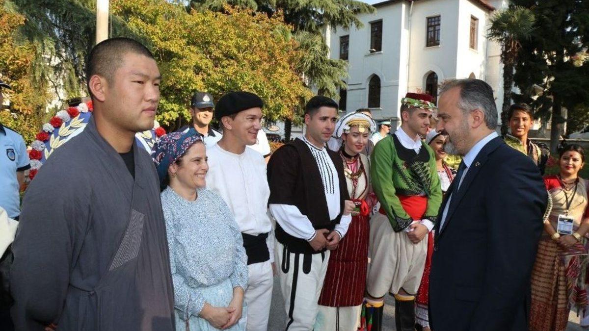 32. Uluslararası Altın Karagöz Halk Dansları Yarışması heyecanı, 21 ülkeden halk dansları ekiplerinin renkli kortejiyle başladı. Büyükşehir Belediye Başkanı Alinur Aktaş, yabancı ekiplerin dansçılarıyla birlikte beyaz güvercin uçurarak, dünyaya barış mesajları gönderdi.Büyükşehir Belediyesi adına Bursa Kültür Sanat ve Turizm Vakfı (BKSTV) tarafından bu yıl 32.’si düzenlenen Uluslararası Altın Karagöz Halk Dansları Yarışması, 7-12 Temmuz tarihleri arasında birbirinden farklı ve eğlenceli görüntülere sahne olacak.Atatürk Anıtı önünde beyaz güvercin uçurularak başlayan ve Cumhuriyet Caddesi üzerinden eski stadyuma kadar süren kortejde, yabancı ekipler yöresel danslarıyla kendilerini tanıttı. Bursalıların yoğun ilgi gösterdiği korteje katılan Büyükşehir Belediye Başkanı Alinur Aktaş, Karagöz Halk Dansları Yarışması’nı evrensel barışa ve kardeşliğe atılmış bir adım olarak gördüklerini ifade etti. Bir kültür harmanı olan Bursa’da herkesin tanık olacağı bu renk cümbüşünün dünya halklarının dostluk ve hoşgörüsünün raksı olacağını belirten Başkan Aktaş, “Geleceği aydınlık Anadolu şehri, yerel değerlerini evrensele dönüştürme gayretini her fırsatta ortaya koyan Bursa’mızda böyle bir organizasyona ev sahipliği yapmaktan son derece mutluyuz. Bu organizasyonun ilk yılından bugüne gelmesinde emeği geçen tüm belediye başkanlarımıza, yöneticilerimize, başta Bursa Kültür Sanat ve Turizm Vakfı Yönetim Kurulu Başkanı Fatma Durmaz olmak üzere değerli çalışma arkadaşlarına, katkı koyan sponsorlarımıza teşekkür ederim. Yarışmanın, esenlik mesajlarıyla barışa köprü olmasını diliyorum” dedi. Başkan Aktaş, kortej için özel hazırlanan eski model bir araca binerek halkı selamladı.Özgün formatıyla geleneksel çizgisini koruyarak bugünlere gelen Altın Karagöz Halk Dansları Yarışması, farklı ülkelerden değişik kültürlere dünyaya yansıma şansını tanıyor. ‘57. Uluslararası Bursa Festivali’ kapsamında organize edilen yarışmaya, bu yıl 21 ülke katılıyor. Başta Türkiye olmak üzere Bolivya, Brezilya, Endonezya, Gürcistan, Hindistan, Karadağ, Kazakistan, K.K.T.C., Kolombiya, Güney Kore, Kuzey Osetya, Malezya, Makedonya, Portekiz, Polonya, Ukrayna ve Türkmenistan gibi ülkelerden halk dansları ekipleri, kültürel birikimlerini Bursa’da izlenime sunacak. Merkeze bağlı 17 ilçede kurulan sahnelerde de 6 gün boyunca gösteriler yapılacak.