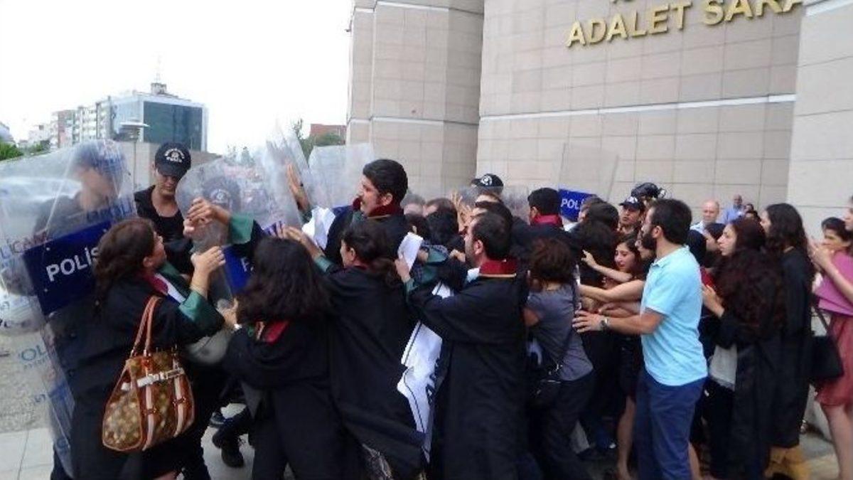 Çağlayan Adliyesi önünde Şırnak’ta tutuklanan meslektaşları için basın açıklaması yapmak isteyen avukatlara polis müdahale etti.Çağlayan’da bulunan İstanbul Adliyesi önüne gelen Özgürlükçü Hukukçular Derneği üyesi bir grup avukat, Şırnak’ta meslektaşlarının tutuklandığını iddia ederek basın açıklaması yapmak istedi. Avukatların açıklama yapmasına müsaade etmeyen polis, grubun adliye önünden ayrılmasını istedi. Basın açıklaması yapmakta direnen gruba polis biber gazı ile müdahale etti. Bu sırada bazı avukatların gazdan etkilenerek fenalaştığı görüldü. Grup, polisin adliye karşısında açıklama yapması konusundaki uyarılarını da dikkate almayınca polis ikinci kez müdahale etti. Müdahale sırasında avukatların polise su fırlattığı ve arbede çıktığı görüldü. Polisin izin vermediği avukatlar, daha sonra sloganlar atarak adliye içerisinde girdiler.