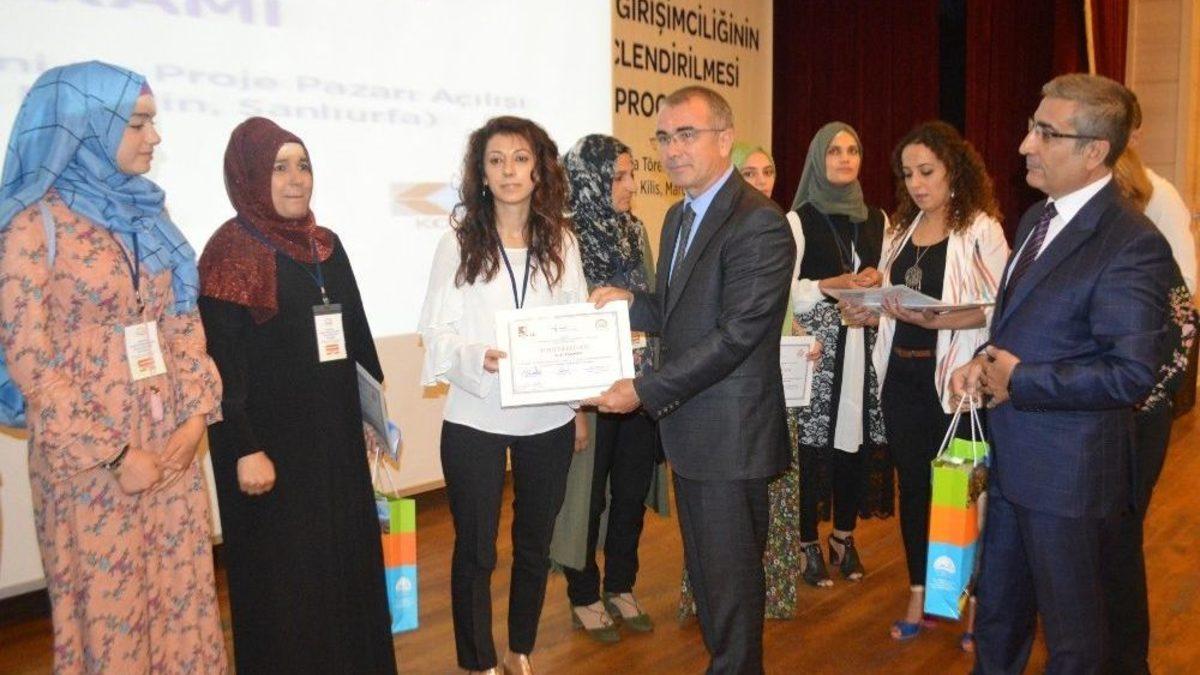 Tarım ve Orman Bakanlığı tarafından yürütülen Mardin, Diyarbakır, Kilis, Şanlıurfa illerinin katılımı ile gerçekleştirilen ’Tarımda kadın girişimcilerin güçlendirilmesi’ programı sertifika töreninde kadın girişimciler ürettikleri projeler için sertifika alırken, başarılı olup ilk üçe giren kadınlar ise plaketle ödüllendirildi.Tarım ve Orman Bakanlığı Eğitim ve Yayın Dairesi Başkanlığı desteği ile Güneydoğu Anadolu Bölgesi’nden Mardin, Diyarbakır, Kilis, Şanlıurfa’da İl Tarım ve Orman Müdürlükleri tarafından yürütülen ’Tarımda kadın girişimcilerinin güçlendirilmesi’ programının bölgesel proje pazarı ve sertifika töreni Mardin’de bir otelde gerçekleştirildi. 96 kadın girişimcinin katıldığı törende kadınlar sertifika ve plaketlerini kundakta ve kucaklarındaki çocuklarıyla birlikte aldı. Kadınlar tarım alanında ürettikleri projeler ile İŞKUR, KOSGEB, kalkınma ajansları tarafından desteklenerek hem ülke hem de ev ekonomisine destek olmak üzere sertifikalarını alıp üretime başladı.İstiklal Marşı’nın okunması ve saygı duruşunda bulunulmasıyla başlayan programa kadın girişimcilerin yanı sıra Mardin Valisi Mustafa Yaman, Bakanlığın Eğitim Yayım ve Yayınlar Tanıtım Daire Başkanı Sürur Kır, tarım il müdürleri, İŞKUR, KOSKEP, Mardin Milli Eğitim Müdürü Yakup Sarı, İl Kültür ve Turizm Müdürü Alaattin Aydın ve çok sayıda davetli katıldı.Programda ilk olarak konuşan Kadın Girişimci Şibel Daş, proje ile kadınların devletten alınan hibelerle aile ve topluma katkı sunarak kadınların güçleneceğini ifade ederek Tarım ve Orman Bakanlığına ve Cumhurbaşkanı Recep Tayyip Erdoğan’a destekleri için teşekkür etti.Tarım İl Müdürü Özkan Önen, bu tarz eğitimlerin yaygınlaştırılmasının kırsal kesimde tarım ve hayvancılığın her alanında rol alan kadınların yapmakta oldukları işlerle ilgili fikirlerinin projeye dönüşmesinde işlerin daha profesyonel yapmalarına, böylelikle tarımsal üretimde verim ve kalite artışına vesile olacağını söyledi.Programda konuşan Bakanlığın Eğitim Yayım ve Yayınlar Tanıtım Daire Başkanı Sürur Kır, tarımın toprak ananın en güzel, en nazlı bebeği olduğunu belirterek, "Bu bebek gece gündüz, yaz kış demeden, emek ister, fedakarlık ister, sabır ister, sevgi ister, ilgi ister, ister de ister. Bakanlığımız tarafından 81 ilde kırsal alanda yaşayan kadınlara yönelik ekonomik yönden güçlendirici ve sosyal yönden geliştirici eğitim hizmetleri verilmekte. Geçici proje ve programlarla destek sağlanmaktadır, yürütülen bu çalışmalarda girişimcinin ve istihdamın kalkınması esasına dayanmaktadır. 2003 yılından bu güne kadar kırsalda kadına yönelik farklı tarımsal konularda 190 bin faaliyette 2 milyondan fazla kadın çiftçiye eğitim verilmiştir. Bakanlığımız 2015 yılından itibaren tarımda kadın girişimciliğini güçlendirmesi programını başlatmıştır. Programda kadınlara KOSGEP-İŞKUR iş birliğiyle girişimcilik eğitimi verildi” dedi.Mardin Valisi ve Büyükşehir Belediye Başkan Vekili Mustafa Yaman programda kadın girişimcilere çalışmalarında başarılar dileyerek Mezopotamya Ovası’nın toprak verimliliğine dikkat çekti. Vali Yaman projede birinci olan kadınlara ödüllerini teslim etti. Sertifika ve ödül törenin ardından girişimci kadınların projelerinin açılışı gerçekleştirilerek üreten kadınların projeleri hakkında protokol üyeleri ve katılımcılar bilgi aldı.Hem anne hem de üreten kadınlarDevlet desteğiyle üreten kadınların kundaktaki bebekleri ve çocuklarıyla sertifika programına gelmeleri dikkat çekti. Şanlıurfa’dan projeye katılan ve ödüle layık görülen Fahriye Doğan ’Ayrıl da gel atım’ projesi ile dereceye girerek hayallerini gerçekleştirmenin mutluluğunu yaşadığını ve atı ile İstanbul’da gazi yarışlarına katılmayı hayal ettiğini söyledi.Bal üretimi ile Mardin’in Savur ilçesinde kendi markasını kurmak için çalıştığını belirten Suzan Akgül, projeye başladığında bebeğinin karnında, şimdi de kucağında bir aylık bebeğiyle kısa bir aranın ardından kendi markasını oluşturmak için çalışmalarını sürdüreceğini ifade etti.Proje kapsamında dereceye giren kadınlardan birincilik almaya hak edenler Türkiye finallerinde yarışacak.
