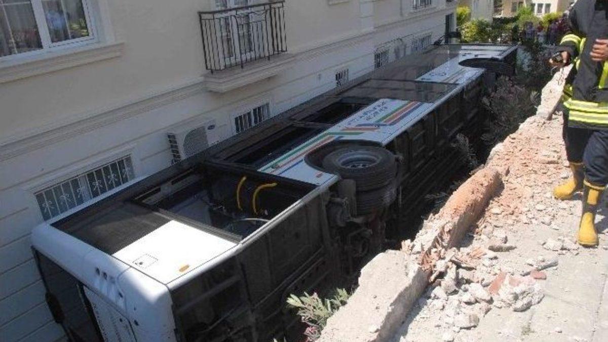 Muğla’nın Fethiye ilçesinde son durakta yolcularını indiren belediye otobüsü, sürücüsü yaşlılara yardım isterken sitenin avlusuna uçtu. Kaza anında otobüsün boş olması faciayı önledi.Edinilen bilgiye göre; Fethiye’nin merkezinden aldığı yolcuları Tasyaka mahallesine götüren Zafer Halimoğlu idaresindeki 48 DM 669 plakalı Muğla Büyük Şehir Belediye otobüsü Taşyaka dolmuş durağı yanındaki son durakta saat 14.45 sıralarında yolcularını indirdi. İddialara göre Otobüste yaşlı olarak bulunan iki kişiye sürücü Zafer Halimoğlu yardım etmek için koştu. Sürücü yaşlı vatandaşların elindeki ağır eşyaları alıp onları indirdiği anda el frenini çekmesine rağmen otobüs yavaşça hareketlendi. Sürücü Zafer Halimoğlu otobüsün rampa aşağı hareketini önlemek için çaba gösterse de başarılı olamadı. 50 kişi kapasiteli belediye otobüsü rampa aşağı giderek 377. sokaktaki Taşyaka Hill Sitesi avlusuna 2 buçuk- 3 metre yükseklikten uçtu. Otobüs site içindeki Fatma Kabakoğlu’na (47) ait binaya büyük bir gürültü ile çarparak yan yattı. Otobüsün çarptığı binanın zemin katında oturan Fatma Kabakoğlu’nun oturma odasında 1 metreye yakın geniş bir delik oluşup binada yer yer çatlaklar oluşup hasar meydana geldi.SÜRÜCÜ ŞOK İÇİNDE İZLEDİBelediye otobüsünün büyük bir gürültü ile site bahçesine uçtuğunu görenler yardıma koştu. Otobüsün içinde kimsenin bulunmadığı öğrenilince hemen herkes derin bir oh çekti. Fethiye Emniyet Müdürlüğü Trafik ve Polis ekipleri yardıma koşarak uçan otobüsün çevresinde güvenlik şeridi çekti. Gürültüyü duyanlar kaza yerine koştu. Vatandaşlar cep telefonlarıyla otobüsü görüntülemeye çalışırken otobüs sürücüsü Zafer Halimoğlu otobüsü büyük bir şok içinde şaşkınlıkla izledi. Muğla Büyük Şehir Belediyesi Ulaştırma Daire Başkanı Alper Kolukısa ve itfaiye görevlileri olay yerine gelerek inceleme ve araştırmada bulundular. Kaza ile ilgili soruşturmayı Fethiye ilçe emniyet müdürlüğü ekipleri yürütüyor. Otobüsün içindeki kamera görüntülerinin de inceleneceği öğrenildi.SÜRÜCÜ “EL FRENİ ÇEKİKTİ”Belediye otobüsünün sürücüsü Zafer Halimoğlu polise kaza anını anlatırken gazetecilerin sorusu üzerine de yaşlı bir amcanın poşetini indireyim dedim. Bir döndüm arkama bir baktım araba kayıyor. Önüne geçtim tuttum ama tutamadım. El freni çekikti” diye konuştu.“BÜYÜK BİR GÜRÜLTÜ KOPTU”Kazayı gören çevre sakinleri büyük bir gürültü duyup koştuk. Otobüsün vitesi boşta olunca buraya kadar sürücüsüz şekilde gelip bu yükseklikten aşağıya uçmuş. O anda deprem oldu zannettik. Bina sallandı. Kedilerimiz köpeklerimiz de korktular” diye konuştular.