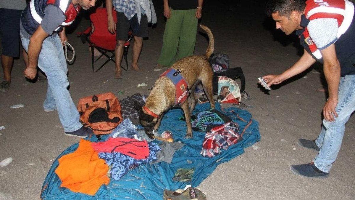 Muğla’nın Fethiye ilçesindeki Kabak Koyu’nda narkotik köpekleri ile uyuşturucu operasyonu düzenleyen jandarma ekipleri, esrar maddesi ele geçirdi.Fethiye İlçe Jandarma Komutanlığı, Faralya Mahallesi’ndeki Kabak Koyu’nda uyuşturucu madde satışı ve kullanımının önüne geçmek amacıyla 1 Temmuz’da düzenlenen operasyonun ardından tekrar baskın düzenledi. Gece yarısı düzenlenen operasyona narkotik dedektör köpekleri ‘Alçı’ ve ‘Çimen’ isimli iki köpek de katıldı.Narkotik dedektör köpeklerle plaja giren jandarma ekipleri, tatilcilerin üzerini ve çantalarını aradı. Dedektör köpeklerin tepki verdiği şahıs ve alanlar üzerinde yoğunlaşan jandarma ekipleri, plajda bir tatilcinin çantasında az miktarda esrar maddesi ele geçirdi.Ekipler, plajdaki aramalarının ardından koydaki işletmelere girdi. Bungalov ve çadırlarda yapılan aramada 2 ayrı noktada daha az miktarda esrar maddesi ele geçirildi. Maddelerle ilişkili olduklarından şüphelenilen 3 tatilci hakkında yasal işlem başlatıldı. Bölgedeki huzur ve güvenliğin sağlanması için benzer uygulamalara devam edileceği kaydedildi.