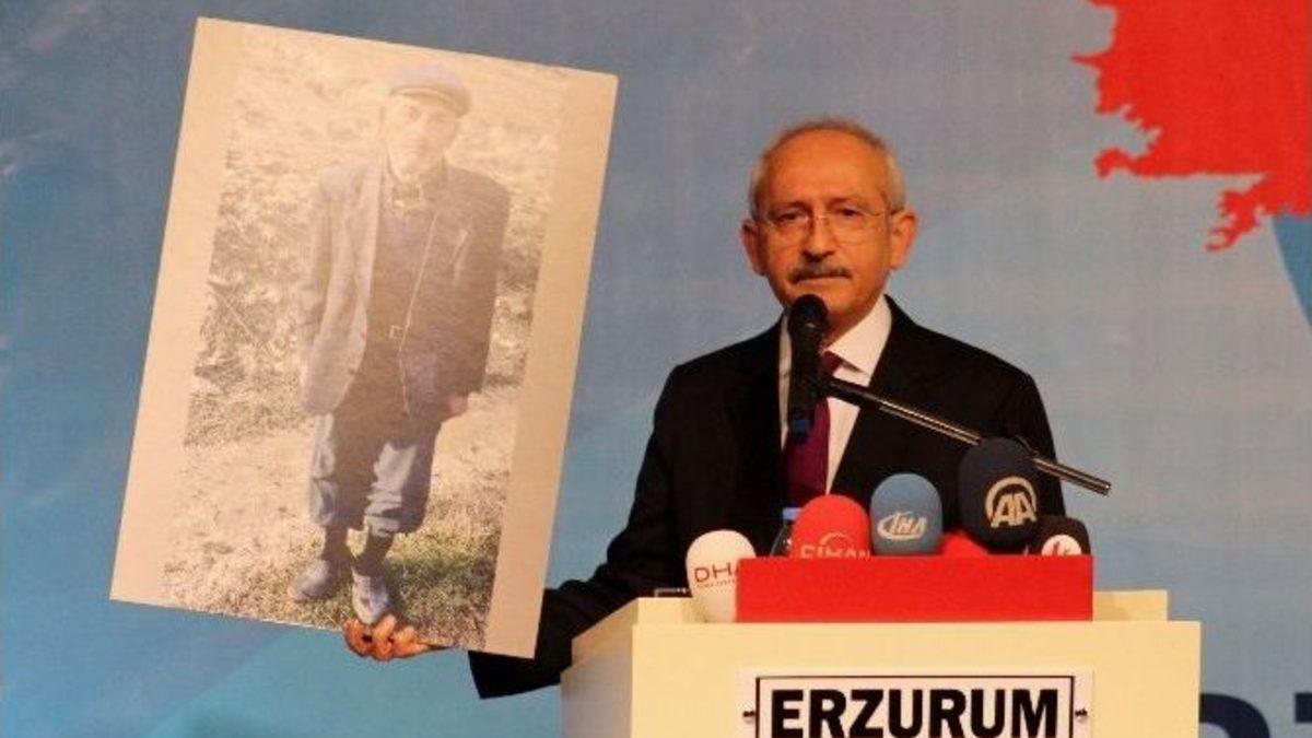 Cumhuriyet Halk Partisi (CHP) Genel Başkanı Kemal Kılıçdaroğlu, Erzurum’da katıldığı bölge toplantısında oğlunu maden kazasında kaybeden ve yırtık kara lastikleriyle gündeme gelen Recep Gökçe’nin fotoğrafı göstererek, hükümeti eleştirdi.CHP tarafından organize edilen “Geleceği Birlikte Kuruyoruz” adlı 4’ncü Bölge Toplantısı Erzurum’un Palandöken ilçesinde bulunan Büyükşehir Belediyesi Kültür Merkezi Salonunda gerçekleşti. Salon önünde kurbanlık olarak kesilmesi planlanan boğayı gören Kemal Kılıçdaroğlu, dua yapılmasının ardından kesimin yapılmamasını isteyerek salona girdi. Coşkuyla karşılanan Kemal Kılıçdaroğlu, yaptığı konuşmada 4 yıl süreyle iktidar olma arzusunu dile getirerek hükümeti eleştirdi. Konuşmasına gençlere güvendiğini belirterek başlayan CHP Genel Başkanı Kemal Kılıçdaroğlu, “Gençlere güveniyoruz. Buraya gelmeden önce 2 kahveye uğradım. 6 milletvekilimiz var dediler. Bizi temsil edecek kimse yok dediler. Ben saraylarda oturmayacağım. Bin odalı sarayda oturmak benim için haramdır, günahtır dedim. Bana yetki vereceksiniz. Şikayet ediyorsanız bana yetki vereceksin. Yetki ver gör bakalım bu ülkede sorunlar nasıl çözülüyor. Doğu’da Batı’da neler oluyor. İşsizlik var. Hepsinin de çözümünü biliyorum. Yurttaşlarıma sesleniyorum senin inancını sömürüyorlar. Senin etnik kimliğin üzerinden kim siyaset yapıyorsa sana ihanet ediyor. Bizim sorunumuz senin çocuğun neden iş bulamıyor? Şapkamızı önümüze koyup yeniden düşüneceğiz. Erzurum cumhuriyetin kalesi olmak zorundadır. Erzurum’a sefalet, hava kirliliği yakışmıyor. Bakın şöyle bütün yatırımlar İstanbul için. Erzurum, Diyarbakır, Anadolu yok mu? Anadolu’nun içi neden boşalıyor. İş bulmak için İstanbul’a, Ankara’ya, İzmir’e gidiyor. Biz bu kaderi değiştireceğiz. Bizim birinci derdimiz herkesin işi olacak. Sosyal yardımları sağlayan bu ülkenin vatandaşları" dedi.Kılıçdaroğlu’nun sözü salonun dolduran katılımcılar tarafından zaman zaman “Başbakan Kemal” sloganları ile kesildi.“Biz ülkemizi seviyoruz. İnancı ne olursa olsun herkesi kucaklıyoruz” diyen Kılıçdaroğlu, konuşmasını şöyle sürdürdü:“Hep beraber yabancı sigara içiyoruz. Biz tüketiyoruz onlar kazanıyor. Kafatasçılık değildir milliyetçilik. Türkiye saman ithal ediyor. Bizim ovamız, yaylalarımız, insanımız mı yok? Biz de hepsi var da eksik olan halkın çıkarlarını savunacak siyaset. Bizim siyasetçiler kendilerini ve yandaşlarını zengin ediyor. Bin odalı saraylar, 250 odalı yanına da ev yapacakmış. 250 çocuğun mu var senin?”“MADENCİ BABANIN FOTOĞRAFI 21. YÜZYILDA TÜRKİYE’NİN AYIBIDIR”Konuşmasına Karaman’da yaşanan maden kazasında oğlunu kaybeden ve cenaze namazında yırtık kara lastikleriyle gündeme gelen Recep Gökçe’nin fotoğrafını göstererek devam eden Kemal Kılıçdaroğlu, “Türkiye’de yaşayan 77 milyon yurttaşıma sesleniyorum. Bu vatandaş 21. yüzyılın Türkiye’sinde yaşıyor. 21. Yüzyılın Türkiye’sinde. 21. Yüzyılın Türkiye’sinde. Yırtık ayakkabı kim giyiyor. İşte bu vatandaş giyiyor. Sen onun edebiyatını yapıyorsun. Bin odalı saray yetmiyor sana. 21. Yüzyılın Türkiye’si değerli arkadaşlar. Ne yapıyorlar. Ayakkabısı yırtık. Kara lastiği değiştirelim yerine yeni bir kara lastik veriyorlar. Kundura bile vermeyi içlerine sindiremiyorlar. Ben bu vatandaşın yanındayım. Benim için bu vatandaş önemlidir. Saray değil” dedi.Huzur, refah, iş, aş isteyen vatandaşın oyunun adresinin halkın partisi CHP’nin olması gerektiğini ifade eden Kılıçdaroğlu, “Huzur, refah, iş, aş mı istiyorsun. Adresin belli olacak, CHP’ye yetki vereceksin. 4 yıl istiyorum 10-12 yıl değil 4 yıl istiyorum. Biz kul hakkı yemeyiz. Haram yiyenden hesap sorarız. Bu ülke zengin. Yeter ki siyasiler çalmasın. Bizim her şeyimiz var neden her şeyi ithal ediyoruz. Son 12 yılda iki Trakya büyüklüğünde arazi ekilmiyor. Çiftçiyi, köylüyü bitirdiler. Kadına yönelik şiddet bu ülkede bin de bin 400 arttı. Bu hükümetin rakamı. Bunu ben söylemiyorum.Yurttaşlarım bize güvenin, bize 4 yıl yetki verin. Egemen bir Türkiye olacak, işsizliği tarihe gömeceğiz. Bize güvenin güzel Türkiye’nin kapılarını açalım. Biz oyu bu ülkede herkesin karnı duysun diye, kimseye diz çökmeyen bir Türkiye için istiyoruz” şeklinde konuştu.CHP Genel Başkanı Kemal Kılıçdaroğlu’na programın sonunda Çat Belediye Başkanı Arif Hikmet Kılıç tarafından Erzurumspor atkısı hediye edildi. Atkıyı boynuna takan Kılıçdaroğlu, kürsüden ayrılarak bir süre salonda yanına gelen ve kendisinden yardım isteyen kadının sorunlarını dinledi. Kadın, eşinden ayrıldığını ve 3 çocuğuyla birlikte çöplerden topladığı gıdalarla yaşam mücadelesi verdiğini öne sürerek Kılıçdaroğlu’ndan yardım talebinde bulundu.Bir süre basına kapalı olarak partililerle toplantı gerçekleştiren Kılıçdaroğlu, daha sonra Erzurum’dan ayrılmak üzere havalimanına hareket etti.