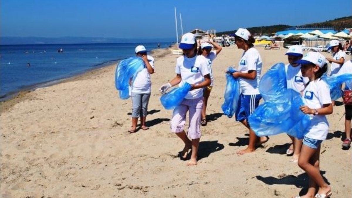 Balıkesir’in Ayvalık ilçesine bağlı dünyaca ünlü Sarımsaklı Plajlarıyla tanınan Küçükköy beldesinde, minikler çevre temizliği yaparken, büyükler ise plajda güneşlenmeyi tercih etti.