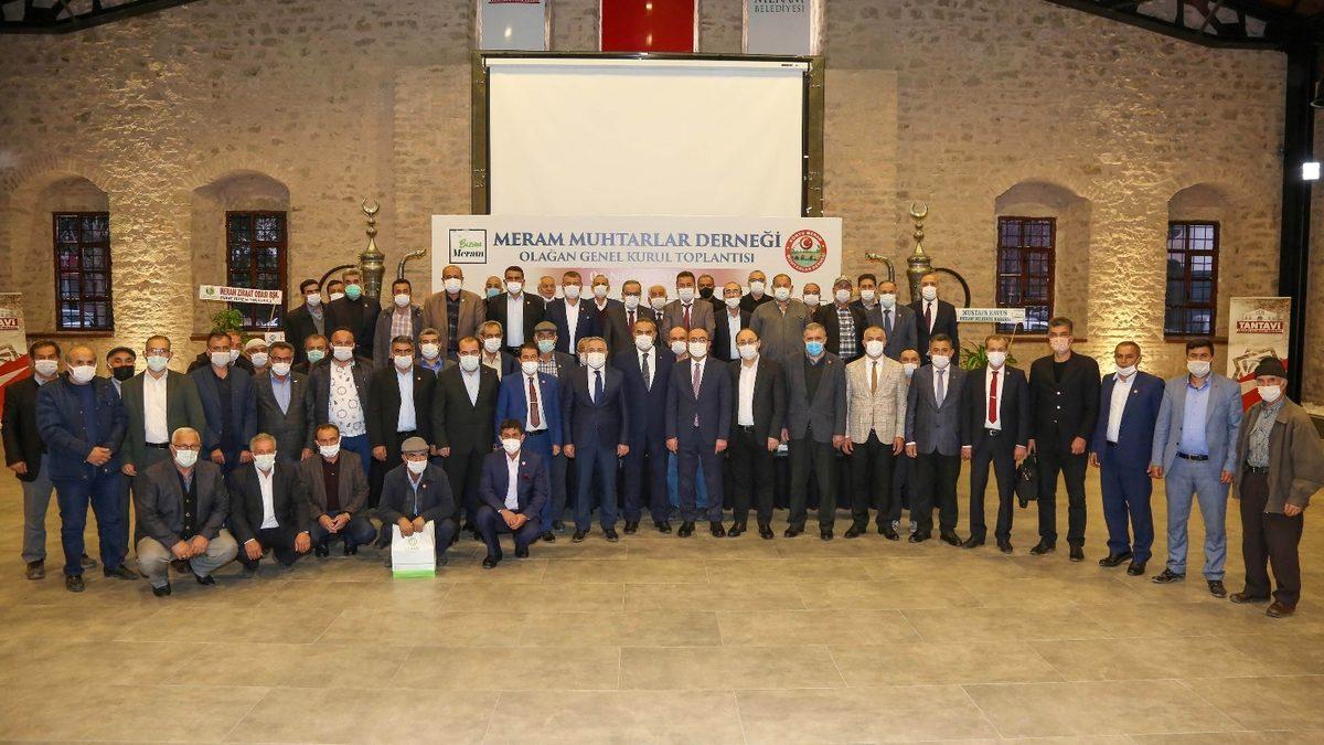 Genel kurulun Meram ve muhtarları için hayırlar getirmesini temenni eden Belediye Başkanı Mustafa Kavuş, Meram ve Meram’ın geleceği için muhtarlarla sık sık bir araya geldiklerini hatırlatarak bu buluşmaların salgın sonrasında da artarak devam edeceğine vurgu yaptı. Muhtarların seçilmiş insanlar olarak devletimizin başı Cumhurbaşkanımız Sayın Recep Tayyip Erdoğan başta olmak üzere tüm devlet idarecileri ve hükümet üyeleri tarafından el üstünde tutulduğunu belirten Başkan Kavuş, “Mahallelerimizin sorunlarını çözmek adına bir araya gelip konuşmaya ihtiyacımız var. Bir ünsiyet oluşması ve gelişmesi adına bu birlikteliğe ihtiyacımız var. Ne mutlu ki biz bugün 70 mahallemizle birlikte kenetlenmiş büyük bir aileyiz, büyük bir ekibiz. Ben bu büyük ailenin bir ferdi olmaktan ve hep birlikte Meram’a hizmet etmekten dolayı büyük mutluluk ve onur duyuyorum. Bu birlik ve beraberliğimiz hiç bozulmasın inşallah. Bu vesile ile bugüne kadar Meram’a hizmet eden tüm muhtarlarımıza şükranlarımı sunuyor, ahirete göç edenlere Allah’tan rahmet diliyorum. Dernek başkanlığına yeniden seçilen Ahmet Taşdemir’e ve yönetim kurulu üyelerine de çalışmalarında başarılar diliyorum” dedi.