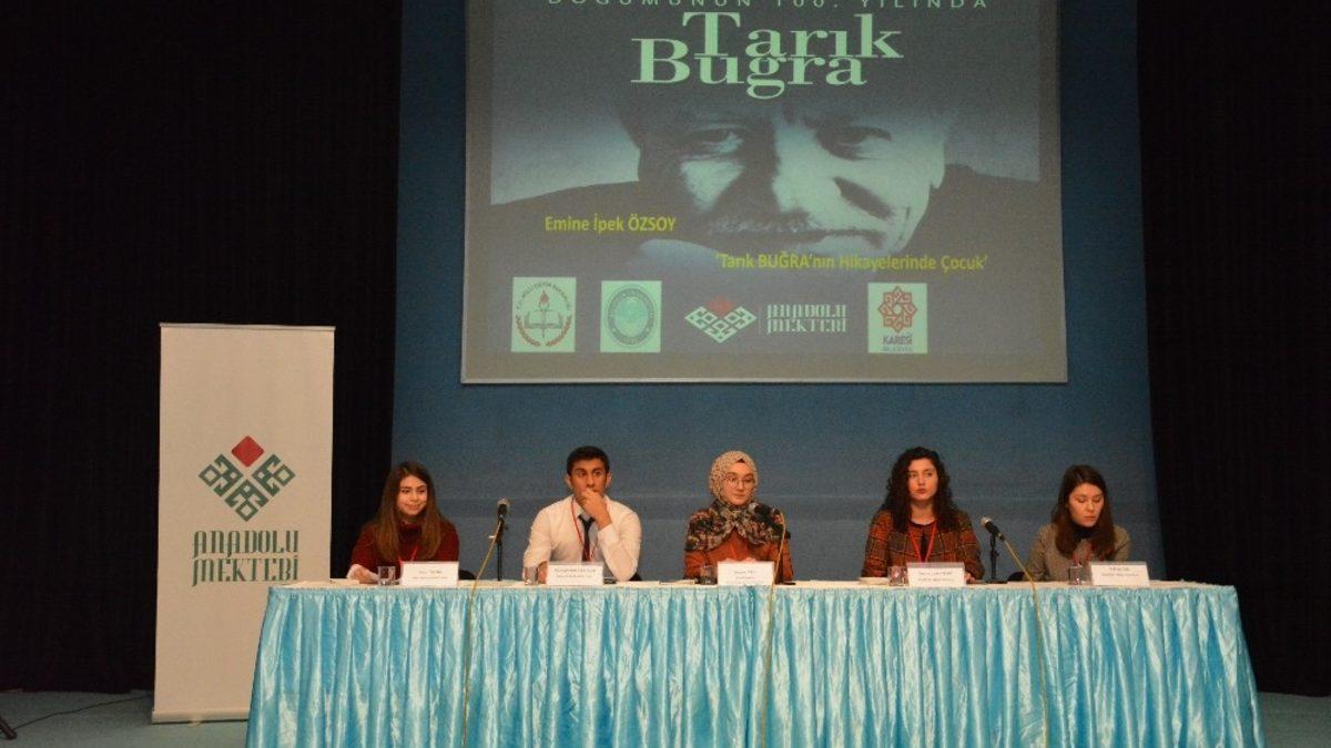 Balıkesir İl Milli Eğitim Müdürlüğü, Balıkesir Üniversitesi, Anadolu Mektebi ve Karesi Belediyesi iş birliği ile “Doğumunun 100. Yılında Tarık Buğra” paneli düzenlendi. Panele Anadolu Mektebi Yürütme Kurulu Başkanı ve Tarım Eski Bakanı Prof. Dr. Sami Güçlü, Vali Ersin Yazıcı, Balıkesir Üniversitesi Rektörü Kerim Özdemir, Balıkesir Büyükşehir Belediye Başkanı Zekai Kafaoğlu, Karesi Belediye Başkanı Yücel Yılmaz, Altıeylül Belediye Başkanı Hasan Avcı, İl Milli Eğitim Müdürü Yakup Yıldız, Ticaret Borsası Başkanı Faruk Kula, il protokolü, okul müdürleri, öğretmenler ve öğrenciler katıldı.