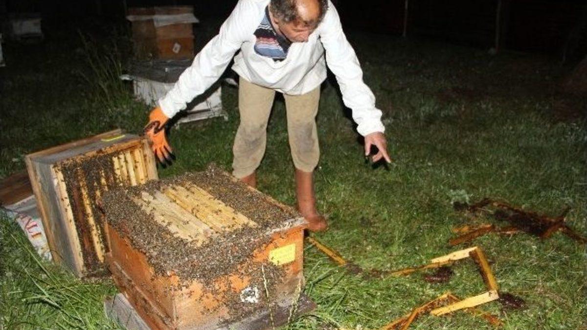 Ardahan’da yağmacı ayı 7 arı kovanına zarar verdi.Cavit Şeker’e ait 55 arı kovanının bulunduğu alana ayı girdi. Şeker, gece evinde dinlenirken köpeklerin havlaması üzerine dışarı çıktı ve bir ayının kovanlara zarar verdiğini fark etti. Havaya ateş açarak ayıyı bölgeden uzaklaştıran Şeker, her dönem olduğu gibi bu dönemde ayıların kovanlara saldırmaya başladığını söyledi.Şeker, "Gece saat 01. 00 civarlarıydı. Evde oturuyordum ve köpeklerin havlamasıyla dışarı çıktığımda ayıyı gördüm. 7 tane çerçeveyi tahrip etmiş ve kovanın üst ballığını indirip alt taraftaki çerçeveleri tahrip ederek tamamını yemişti" dedi.Ardahan Arıcılar Birliği Başkanı İlhan Evliyaoğlu da bölgeye giderek incelemede bulundu. Evliyaoğlu bölgede, Akyaka köyü, Tepeler, Ovapınar, Dağ evi, Sulakyurt ve diğer ova köylerinde ayıların arılı kovanlara büyük zarar verdiğini dile getirerek şunları kaydetti: "Merkeze bağlı Akyaka köyündeyiz şu anda ve gece saat 01.00 sularında arıcı arkadaşımız telefon açtı. Yaklaşık olarak bölgemizde, Akyaka köyü, Tepeler, Ovapınar, Dağ evi ve ova köylerinde ayı arılı kovanlara zarar vermektedir. Bu gece tesadüf olarak üretici arkadaşımız bizi aradı. Gördüğünüz gibi arılı kovanlarımız koruma altına alınmış olmasına rağmen buradan geçerek arılı kovanlarımıza zarar vermiştir. Boz ayı arılıkta hangi kovanda bal var ise onun kokusunu alarak en güçlü kovanı açarak üstlüğü yere koymuş tabanda bulunan yaklaşık olarak 7 çerçeveyi yağmalayarak yemiştir."Yetkililerin bu duruma çözüm bulmaları gerektiğini ifade eden Evliyaoğlu, "Şu anda bal sezonundayız ve bal gelmesi durumunda her kovandan yaklaşık 20 kilo bal elde edilmektedir. Üreticilerimizin mağdur olmaması için, ayılar dünyada ve ülkemizde ne kadar koruma altına alınmış olsa da üreticiye zarar vermektedir. Yetkililerin buna karşı tedbir almaları gerekmektedir. Yabani hayvanların koruma altına alınmasını bizlerde istiyoruz ama bu tür zararların meydana gelmemesi için de yetkililerin tedbir almalarını istiyoruz" diye konuştu.