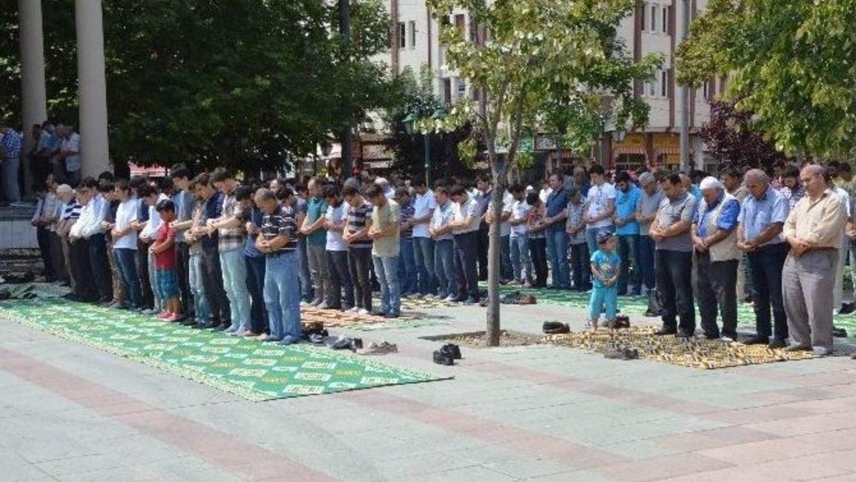 Eskişehir’deki birçok camide olduğu gibi, cuma namazı için Reşadiye Camii’nde de yer bulamayan vatandaşlar, öğlen saatlerinde etkisini iyice gösteren sıcak hava ve kavurucu güneşe rağmen ibaretlerini açık alanda yerine getirdiler.Eskişehir’de son günlerde yağışlı havanın yerini sıcak havalara bırakması üzerine, özellikle öğlen saatlerinde yaşanan aşırı sıcaklar vatandaşlara zor anlar yaşatıyor. Cuma namazı için Reşadiye Camii’ne gelen Eskişehirli vatandaşlar, cami içinde ve gölgelik bölgelerde yer bulamayınca çareyi bahçede güneş altında namaz kılmakta buldu. Ağaç altları ve brandaların altlarının da dolması üzerine, bazı vatandaşalar güneşin ısıttığı taşların üzerinde namaz kıldı. Bahçenin büyük bir bölümünün güneş ışığı alırken, kalabalık yüzünden cemaat kaldırıma kadar taştı.