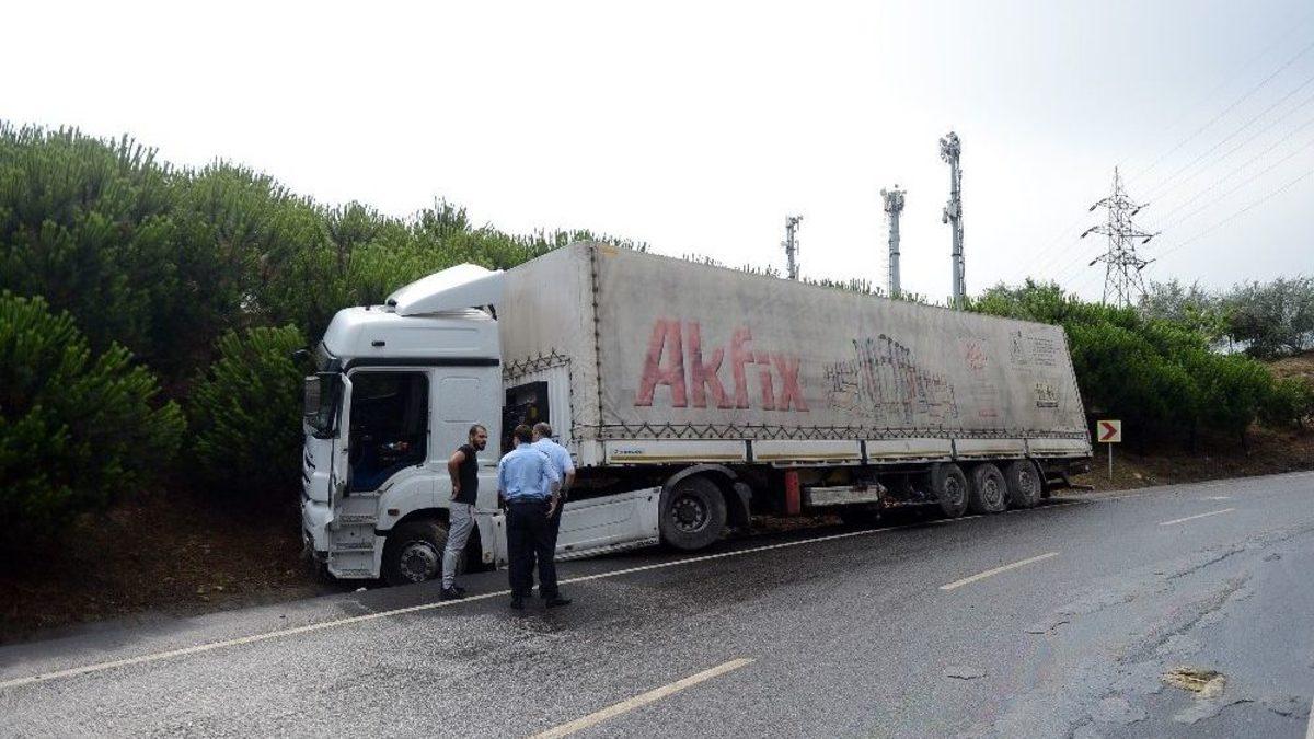 Başakşehir’de yağmur nedeniyle kayganlaşan yolda kontrolden çıkan tır, bariyerleri aşarak 2 araca çarptıktan sonra yan yattı.Kaza, Atatürk Olimpiyat Stadı yolunda meydana geldi. İddiaya göre, bir süre önce yağan yağmur yolu kayganlaştırdı. Atatürk Olimpiyat Stadı yolundan Bahçeşehir istikametine devam eden tır sürücüsü, kayganlaşan yolda kontrolünü kaybetti. Keskin virajda bariyerleri aşan tır, İkitelli istikametinden gelerek stat yoluna bağlanan 2 araca çarptıktan sonra yol kenarında yan yattı. Olay yerine ihbar üzerine itfaiye, polis ve sağlık ekibi sevk edilirken, kazada yaralanan olmadığı anlaşıldı. Tırdan dökülen mazot ve yağlar ekipler tarafından kumlama işlemi ile temizlendi. Polis olay yerinde incelemesine devam ederken trafik bir süre durdu.