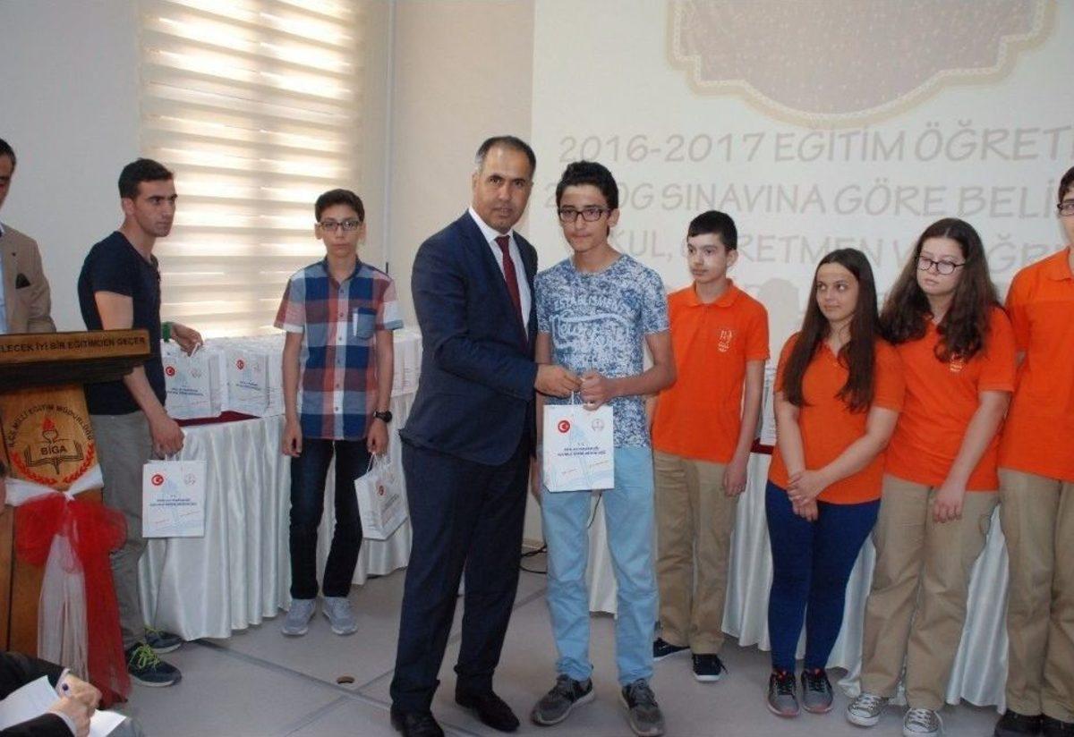 Çanakkale’nin Biga ilçesinde TEOG sınavında dereceye giren öğrencilere ödülleri verildi.2016-2017 Eğitim-Öğretim yılında TEOG sınavında 118 ve üzeri doğru yapan öğrencilere tablet, ders ortalamalarına göre ilk üçe giren okul müdürlerine bilgisayar ve aynı zamanda en fazla sıçrama yapan 3 okul müdürlüklerine tablet hediye edildi. Ödül törenine İlçe Milli Eğitim Müdürü Erkan Bilen, İlçe Milli Eğitim Şube Müdürü Müjdat Yüksel, öğrenciler, müdürleri ve veliler katıldı. İlçe Milli Eğitim Müdürü Erkan Bilen, “8 yılın sonucunda almış olduğunuz bir başarı var. Buda ilçemiz adına gurur verici bir olay. Bu anlamda velilerimizi öğrencilerimizi,öğretmenlerimizi ,okul yönetimini tebrik ediyorum .Çanakkale’de bu yapmış olduğunuz özverili çalışmalar sonucunda en başarılı ilçeyiz.Onun için bunun karşılığı sadece bu ödüller değil sizler daha güzellerine layıksınız. Umarım bu bir başlangıç bundan sonraki süreçlerde de daha değişik daha güzel şekilde ödüllendirecek ben 118-120 doğru yapan öğrencilerimizden ziyade tüm başarılı olan öğrencilerimizi tebrik ediyorum dedi.