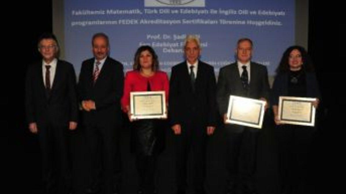 Bülent Ecevit Üniversitesi Fen Edebiyat Fakültesi FEDEK Akreditasyon Belgesi takdim töreni yapıldı.Bülent Ecevit Üniversitesi Fen Edebiyat Fakültesi bölümlerinin FEDEK Akreditasyon Belgeleri takdim töreni 24 Kasım 2017 Cuma günü Sezai Karakoç Kültür Merkezi Konferans Salonunda yapıldı. Tören, Rektör Vekili Prof. Dr. Ali Azar, Rektör Yardımcıları Prof. Dr. Haluk Güven, Dekan Prof. Dr. Şadi Şen, FEDEK Temsilcisi Prof. Dr. Talat Özpozan, Turizm Fakültesi Dekanı Prof. Dr. Kemal Büyükgüzel, Tıp Fakültesi Dekanı Prof. Dr. Ali Borazan, Diş Hekimliği Fakültesi Dekanı Prof. Dr. Emre Bodrumlu, Dekan Yardımcıları Doç. Dr. Ayşe Kaplan, Yrd. Doç. Dr. Osman Arıcan, BEÜ Genel Sekreteri Ertuğrul Karalar, fakültenin bölüm başkanları, öğretim üyeleri ve öğrencilerin katılımıyla gerçekleşti.Fen Edebiyat Fakültesinde hazırlıklarına 2011 yılının Haziran ayında başlanan FEDEK akreditasyon süreci, 19 - 21 Mart 2017 tarihleri arasında FEDEK Değerlendirme Takım Üyeleri tarafından yapılan saha ziyaretleri ile tamamlanmıştı. Saha ziyaretlerinde yeterli bulunarak akredite edilen Batı Dilleri ve Edebiyatları, Matematik ve Türk Dili ve Edebiyatı bölümlerinin başkanlarına FEDEK Akreditasyon Derneği tarafından hazırlanan Akreditasyon Belgeleri törenle takdim edildi.BEÜ Fen-Edebiyat Fakültesi Dekanı Prof. Dr. Şadi Şen, BEÜ’nün kaliteli eğitim anlayışı çerçevesinde Fen-Edebiyat Fakültesinde yürütülen akreditasyon çalışmalarının son yıllarda hız kazanarak devam ettiğini ve fakültedeki akredite edilmiş bölüm sayısının artırılması için çalışmaların sürdüğünü ifade etti. Dekan Prof. Dr. Şadi Şen “Akreditasyon çalışmalarında görev alan ve emeği geçen tüm personelimize teşekkür ediyorum. Batı Dilleri ve Edebiyatları, Matematik ve Türk Dili ve Edebiyatı bölümlerimizin FEDEK tarafından akredite edilmesi onur vericidir. Şu anda akreditasyon süreçlerinin devam ettiği Kimya, Moleküler Biyoloji ve Genetik, Tarih, Arkeoloji ve Sosyoloji bölümlerimizin de akredite olmasıyla yakın gelecekte FEDEK tarafından akredite edilmiş bölüm sayımızı 9’a çıkarmayı hedefliyoruz” şeklinde konuştu.Törende bir konuşma yapan BEÜ Rektör Vekili Prof. Dr. Ali Azar “Kaliteli eğitim, sürekli büyüyen ve gelişen Üniversitemizin önceliklerinin başında yer almaktadır. Tüm birimlerimizde kalite güvencesi ve akreditasyonla ilgili çalışmalara öncelik verilmekte ve tüm çalışmalar Rektörlüğümüzde desteklenmektedir. Yakın gelecekte akredite olmuş bölüm ve program sayısında kayda değer artışlar kaydedilecektir. FEDEK Akreditasyon çalışmalarında emeği geçen tüm akademik personelimize ve BEÜ’nün kalite güvencesi süreçlerine öncülük eden, Üniversitemizde kalite kültürü oluşmasında çok değerli katkıları bulunan önceki Rektörümüz, ÖSYM Başkanı Prof. Dr. Sayın Mahmut Özer’e teşekkür ediyorum. Ayrıca Fen Edebiyat Fakültemizde akreditasyon çalışmalarını başlatan Dekanımız Prof. Dr. Şadi Şen’e, öğretim üyelerine ve FEDEK Temsilcisi Prof. Dr. Talat Özpozan’a teşekkür ediyorum” şeklinde konuştu.