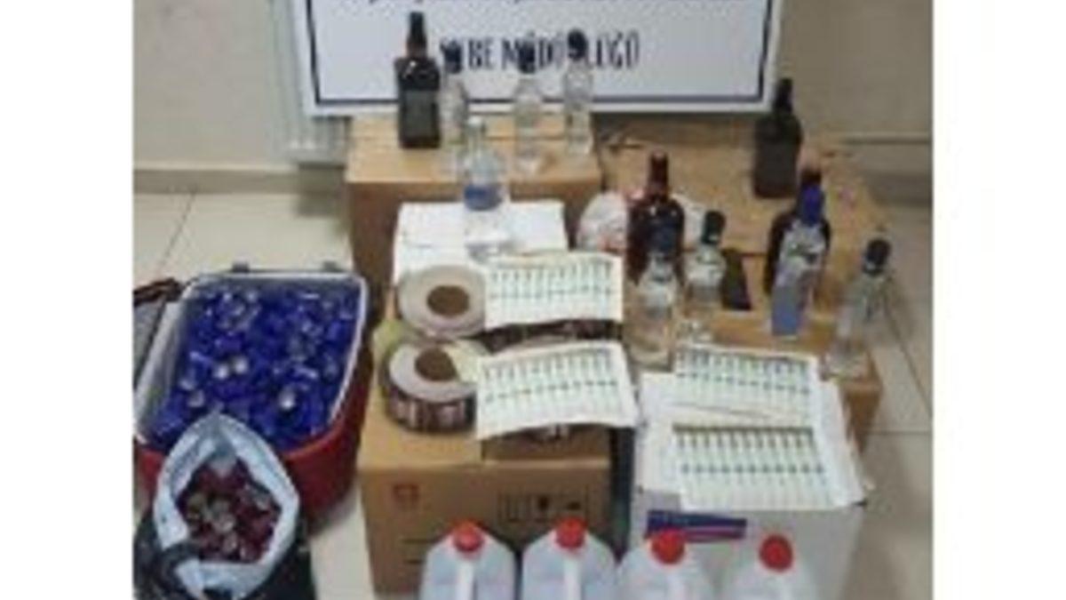 İl Emniyet Müdürlüğü Kaçakçılık Suçlarıyla Mücadele Şube ekipleri, Bornova'da iki ayrı iş yerinde sahte içki imalatı yapıldığı bilgisine ulaştı. Belirlenen adreslere yapılan eş zamanlı baskınlarda operasyonla, 71 şişe sahte içki, 25 litre etil alkol, 10 litre açık viski, 85 fotokopi TAPDK bandrolü, 661 yabancı menşeili bandrol, 2 bin 300 etiket, 570 şişe kapağı ve 66 boş şişe ele geçirildi. Operasyon kapsamında Y.E. (27), Y.D. (20), A.C. (25) ve F.E. (41) gözaltına alındı. Emniyet Müdürlüğü'ndeki işlemlerinin tamamlanması ardından adliyeye sevk edilen zanlılardan hakkında daha önceden kesinleşmiş hapis cezası bulunan Y.E. tutuklandı. Diğer zanlılar ise tutuksuz yargılanmak üzere serbest bırakıldı.