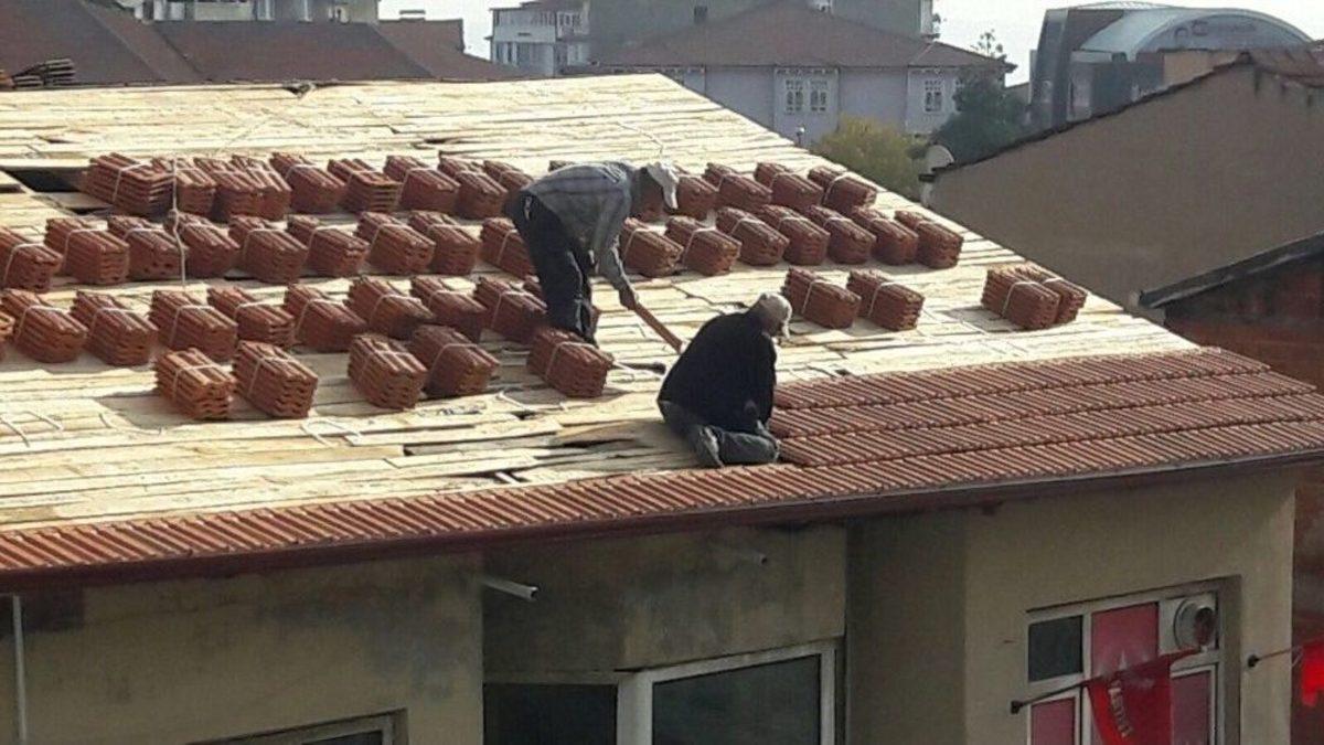 Bilecik’te geçtiğimiz günlerde 3 katlı bir apartmanın çatısında hiçbir önlem almadan eski çatıyı kaldırma çalışması yaparak canlarını hiçe sayan 2 kişi, aynı sorumsuzluğu yeni çatıda da sürdürdüler.Tehlikeli çalışma Bilecik merkez İstiklal Mahallesi Teyfikbey Caddesi üzerinde 3 katlı bir binanın çatısında yaşandı. Binanın çatısında çalışanların hiçbir güvenlik önlemi almaması çalışan 2 işçi dikkat çekerken, kendilerinin çatıya bağlayan herhangi bir önlem olmaması çevre evlerdeki vatandaşların adeta yüreğini ağzına getirdi. Görüntülerde bir kişi çatının altından diğerine çatı kiremitlerini verirken, 1 kişi ise çatığının ucunda kendinin çatıya bağlayan herhangi bir önlem olmaması gözüküyor. Bu işçiler geçtiğimiz günlerde apartmanın eskiyen çatısını kaldırırken de aynı sorumsuzluğu göstermişti.