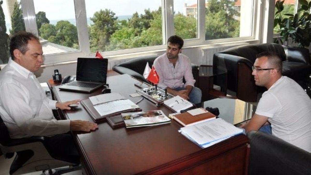Belediye Başkanı Op. Dr. Adem Dalgıç’la görüşerek dergi hakkında bilgiler veren Civan Tekirdağ’ın tanıtımına verdiği önem için Dalgıç’a plaket verdi.