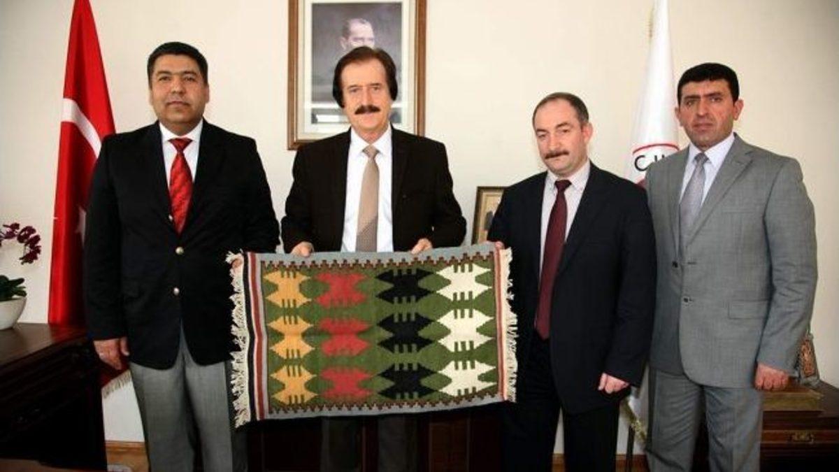 Cezaevi Müdürleri Birol ve Çelebi, ziyaretin ardından Rektör Kocacık'a mahkumlar tarafından dokunan el işi kilim hediye etti.