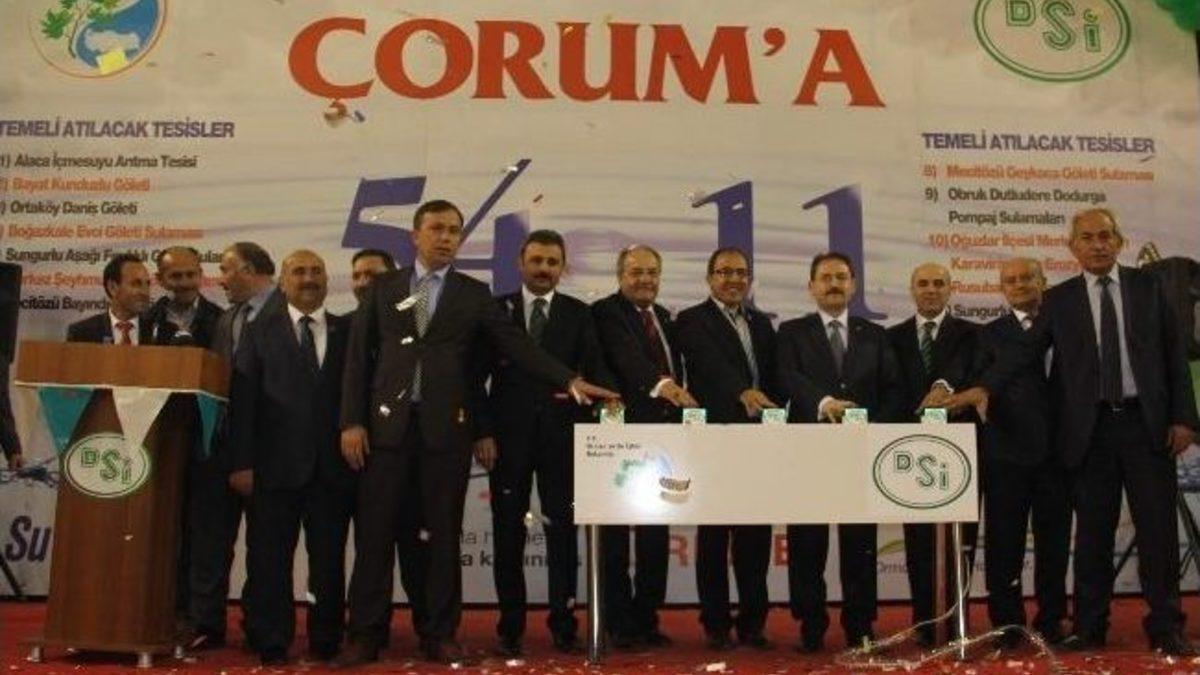 Orman ve Su İşleri Bakanlığı tarafından Çorum’a yaptırılacak olan 11 yeni tesis için toplu temel atma töreni düzenlendi.54 milyon TL’ye mal olacak tesislerin hizmete girmesiyle birlikte 24 bin dekar arazi sulama imkanına kavuşurken, Bayat ilçesi, Eskialibey ve Kunduzlu beldeleriyle 31 köyünde içme suyu karşılanacak.Atatürk Spor Salonu’nda düzenlenen temel atma törenine Vali Sabri Başköy, AK Parti Çorum Milletvekili ve TBMM İdare Amiri Salim Uslu, AK Parti Çorum Milletvekili Cahit Bağcı, Orman ve Su İşleri Bakanlığı Müsteşarı Prof. Dr. Lütfi Akça, Belediye Başkanı Muzaffer Külcü, DSİ Genel Müdür Yardımcısı Yakup Başoğlu, AK Parti Çorum İl Başkanı Ahmet Sami Ceylan ve davetliler katıldı.Orman ve Su İşleri Bakanlığı Müsteşarı Prof. Dr. Lütfi Akça, son 11 yılda Türkiye’de 249 barajın hizmete açıldığını belirterek, “Biz iş yapıyoruz, hizmet üretiyoruz” dedi.Bakanlık olarak 11 yılda 65 milyar TL’lik yatırım yaptıklarını açıklayan Akça, “2003 yılında ülkemizde 35 baraj vardı. Biz 249 baraj yaptık. Buda yılda 20 ila 22 baraj demektir. Bugün 284 barajımız var. Bunun 249’u 11 yılda yapıldı. O kadar yoğun bir çalışma yürütüyoruz ki yaptığımız işlerin reklamını dahi yapamıyoruz. Başbakanımız da ne diyor, “Ben lafa değil, icraata bakarım” Bizde reklam yapmıyoruz. Laf üretmiyoruz. İş yapıyoruz. Hizmet üretiyoruz” diye konuştu.Bakanlık olarak master planı hazırladıklarını anlatan Prof. Dr. Akça, 10-15 yıl sonra hangi yerleşim biriminde hangi tesise ihtiyaç var, bunu bugünden bildiklerine dikkat çekti.Hayata geçirdikleri projelerle ülkede sulanabilir alanları artırdıklarının altını çizen Akça, “Türkiye tarım arazilerin sulanmasıyla birlikte tarımsal üretimde dünyada yedinci sıraya yükseldi. Ülkedeki 850 milyon dekar arazinin 600 milyon dekarını sulanabilir hale getirdi. Geriye kalan kısmı ise 2023 yılına kadar sulanabilir seviyeye getireceğiz. Türkiye’de sulanamayan arazi bırakmayacağız. Topraklarımız suyla birlikte berekete kavuşacak, çiftçinin yüzü gülecek” dedi.“ÇORUM, SANAYİSİNİN YANI SIRA TARIM KENTİ OLARAK ANILACAK”AK Parti Çorum Milletvekili ve TBMM İdare Amiri Salim Uslu da, Orman ve Su İşleri Bakanlığı tarafından Çorum’a bugüne kadar 6.2 milyar TL yatırım yapıldığını açıkladı. Temeli atılan 11 tesisin hizmete girmesiyle kentte sulu tarıma geçileceğini dile getiren Uslu, artık Çorum’un sanayisinin yanı sıra tarım kenti olarak anılacağını kaydetti. 2002 yılında Çorum’da 13 gölet ve 2 baraj bulunurken bugün 97 göletin bulunduğunu anlatan Uslu, Çorum’un Türkiye’nin ikinci göller bölgesi olacağını belirtti.AK Parti iktidarında Çorum’a yapılan yatırımların çetelesini tutmanın veya bir çatı altında toplamanın imkansız olduğunun dile getiren Uslu, yapılan hizmetlerin açılışına dahi yetişemediklerini belirtti.Millete nutuk atmak yerine hizmet ürettiklerini anlatan Uslu, “Yapay gündemlerle veya iç ya da dış operasyonlarla uğraşmadığımızda biz daha çok ve daha iyi işler yapacağız” dedi.AK Parti Çorum milletvekili Cahit Bağcı ise, Çorum’a yapılan yatırımlarda tarımsal sulamaya önem verildiğini belirterek bu alanda yapılan yatırımlarla bu alandaki kayıp yılların telafi edileceğini belirtti.Sulama projeleriyle toprağı suyla buluşturacaklarını dile getiren Milletvekili Bağcı, “Koçhisar sulama projesi Çorum için hayati bir proje. 50 yıldır insanlar bunu bekliyordu. Çorumlu çiftinin ekmeğini büyütecek olan projelerin hayırlı olmasını diliyorum. Arazilerin verimini artıracak bu projelerin akabinde hayvancılık ve endüstri bitkilerinde gelişme göstererek geliri artıracaktır” şeklinde konuştu.Belediye Başkanı Muzaffer Külcü ise, bu yatırımların Çorum’un ve köylerinin beklediği yatırımlar olduğunu ifade etti. Başkan Külcü, Başbakan Erdoğan’ın önce İstanbul’u ardından tüm Türkiye’yi suyla buluşturduğunu belirtti. Çorum Belediyesi olarak içme suyuyla ilgili yaptıkları çalışmalar hakkında da açıklamada bulunan Külcü, Çorum’un 30-40 yıllık ihtiyacını karşılayacak suyunun bulunduğunu sözlerine ekledi.Konuşmaların ardından Alaca Suyu Arıtma Tesisi, Bayat-Kunduzlu İçmesuyu Göleti, Ortaköy Daniş Göleti, Boğazkale-Evci Sulama Göleti, Sungurlu-Aşağı Fındıklı Sulama Göleti, Merkez Şeyhmustafa Sulama Göleti, Mecitözü Bayındır Sulama Göleti, Mecitözü Geykoca Sulama Göleti, Obruk-Dutludere Dodurga Pompaj Sulamaları, Oğuzlar Karavirançay Erozyon ve Hububat Zararlarından Korunma Tesisi ile Sungurlu Eşme Köyü Eşme Deresi Tesislerinin temeli atıldı.