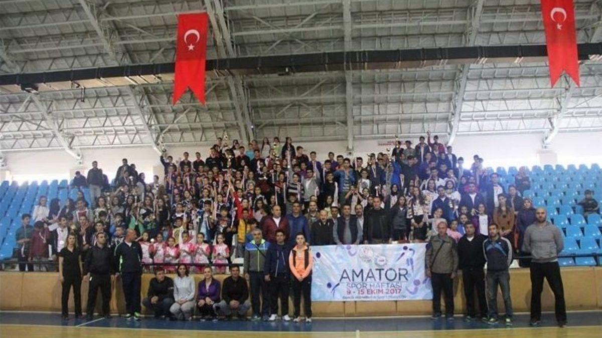 Erzincan’da Amatör Spor Haftası etkinlikleri düzenlenen ödül töreni ile sona erdi.Gençlik Spor Bakanlığı, Spor Genel Müdürlüğünün 2017 faaliyet programında yer alan Amatör Spor Haftası 09-15 Ekim 2017 tarihleri arasında Erzincan’da çeşitli sportif etkinliklerle gerçekleştirildi. Bir hafta süresinde Erzincan’da Amatör Spor haftası kapsamında organize edilen spor müsabakaları gerçekleştirildi. Amatör spor haftası etkinlikleri Erzincan Gençlik Hizmetleri ve Spor İl Müdürlüğü 13 Şubat Spor salonunda düzenlenen ödül töreni ile sona erdi.Düzenlenen ödül töreni saygı duruşunda bulunulması ve istiklal marşının okunmasıyla başladı. Daha sonra Erzincan Gençlik Hizmetleri ve Spor İl Müdür Vekili Fatih Çöpür, tarafından günün anlam ve önemine dair konuşma yapıldı. Yapılan konuşmanın ardından 9-15 Ekim 2017 tarihleri arasında Erzincan’da gerçekleştirilen spor müsabakalarında dereceye giren takımlara kupaları sporculara ise madalyaları takdim edildi. Program dereceye giren tüm sporcuların ve antrenörlerinin yer aldığı Amatör Spor haftası hatıra fotoğrafının çekilmesinin ardından sona erdi.Düzenlenen programa Erzincan Gençlik Hizmetleri ve Spor İl Müdür Vekili Fatih Çöpür, Erzincan Amatör Spor Kulüpleri Federasyon Başkanı Emin Turan, Tesisler Şube Müdürü Hakan Aksaray, Okul Sporları Şube Müdürü Atilla Uğurlu, Üzümlü Gençlik Hizmetleri ve Spor İlçe Müdürü Selami Seser, Tercan Gençlik Hizmetleri ve Spor İlçe Müdürü Fevzi Koçoğlu, Antrenörler, Sporcu velileri ve sporcular katıldı.