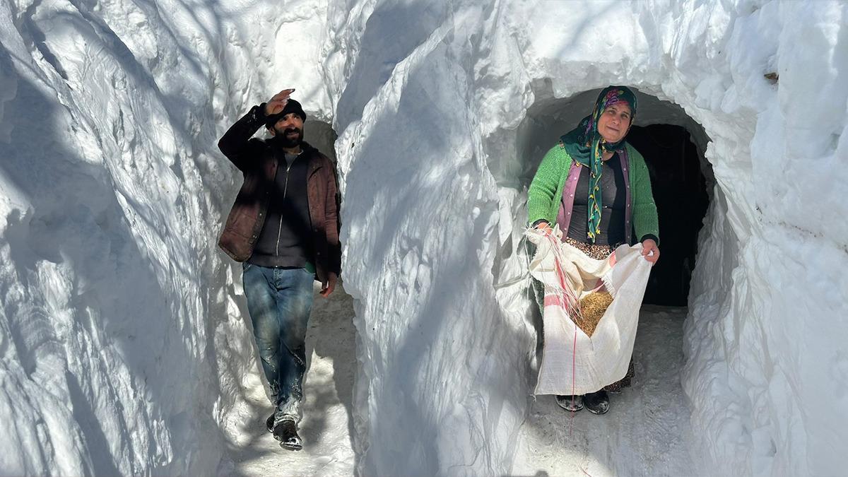 Hayvanlarına yem taşımak için kar tünelinden geçerek ahıra ulaştıklarını belirten Tuci, yaşadıkları zorluklara rağmen hayvancılığı sürdürmeye çalıştıklarını ifade etti.