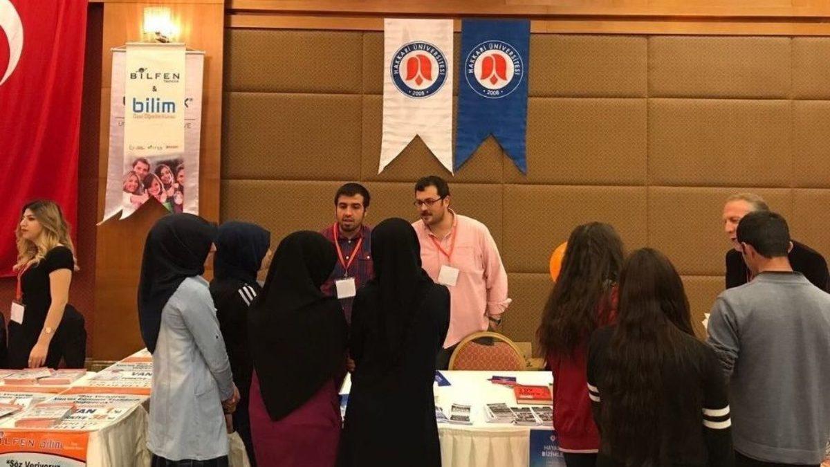 Hakkari Üniversitesi, Van İl Milli Eğitim Müdürlüğü tarafından düzenlenen ‘Üniversite Tanıtım ve Tercih Günleri’ programında yoğun ilgi görüyor.8-9 Mayıs 2017 tarihlerinde Van’da gerçekleştirilen ‘Üniversite Tanıtım ve Tercih Günleri’ programında Hakkari Üniversitesi de katıldı. Öğrencilerin yoğun ilgi gösterdiği stantta üniversiteyle ilgili ilgiler verilerek, broşürler dağıtıldı. Öğretim üyeleri Yrd. Doç. Dr. Emrah Gül, Yrd. Doç. Dr. Muhammed Cemal Toraman ve Araştırma Görevlisi İhsan Settar Kayhan tarafından açılan stantta, ziyaretçilere ve özellikle lise öğrencilerine Hakkari Üniversitesi hakkında ayrıntılı bilgiler verildi. Standı ziyaret eden öğrencilere Hakkari Üniversitesini tanıtmak ve özendirmek amacıyla tanıtım ürünleri hediye edildi.