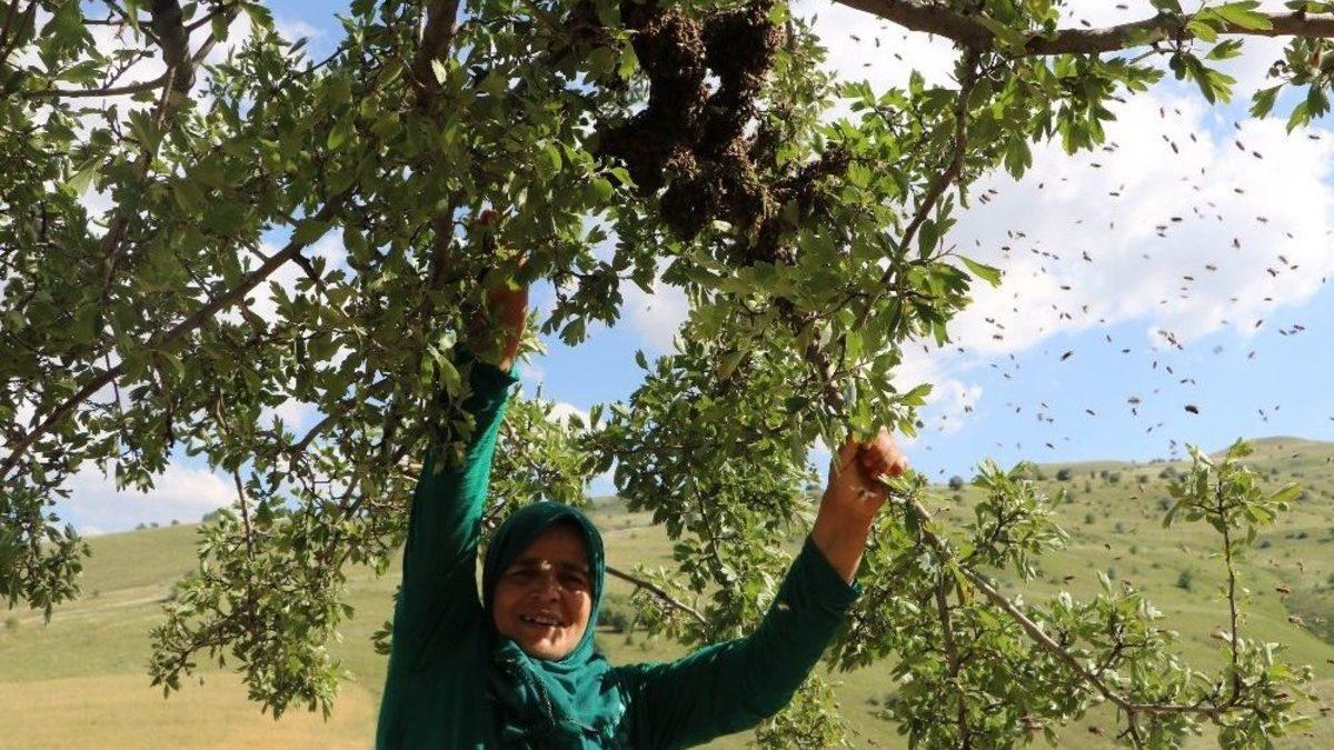 Sivas’ta arıcılık yapan Emine Tomakin, ağaç dalına konan binlerce bal arısını maske kullanmadan elleri ile kovana yerleştirdi.Her yıl Ordu’dan gelip Sivas’ın Bingöl köyü yakınlarında eşi ile birlikte gezgin arıcılık yapan Emine Tomakin (55), cesaretiyle erkek arıcılara taş çıkartıyor. Tomakin akıl almaz bir cesaret ile arıcıların maske ve özel kıyafet kullanarak yaptığı işleri maske kullanmadan çıplak elle gerçekleştiriyor. Kadın arıcı, yumurtalarından çıkıp kovanlarına sığmayan ve bir ağacın dalında yuvalanan binlerce bal arısını, hiçbir koruyucu malzeme kullanmadan çıplak ellerini ile kovana koymayı başardı. Bu işlemi yaparken sergilediği rahat tavırlar ise dudak ısırttı.Yaklaşık 10 yıldır arıcılıkla uğraştığını belirten Tomakin, “Arı oğul verdi. Bende oğulu kovana yerleştirdim. Ben bu duruma alıştığım için bana tehlikeli gelmiyor. Bazen arılar sokabiliyor. Ancak bu duruma da alıştığımdan beni rahatsız etmiyor. Sıcak havalarda maske bunalttığı için kullanmamayı tercih ediyorum. Bu şekilde daha rahat çalışabiliyorum” şeklinde konuştu.