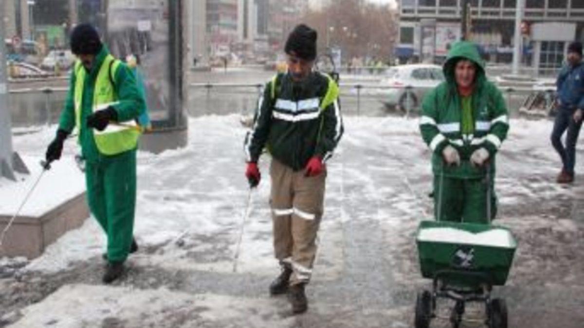 Kar yağışı başlar başlamaz ekiplerini seferber eden Çankaya Belediyesi, yol açma çalışmalarının ardından kaldırım temizleme çalışmalarına başladı.