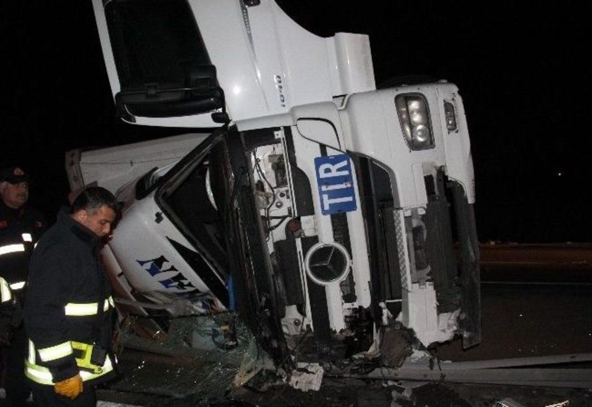 Bursa-İzmir yolunda kontrolden çıkan TIR devrildi. TIR sürücüsü olay yerinde hayatını kaybederken 3 saat süren...