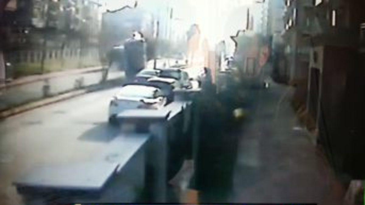 Bu arada, kaza anı bir iş yerinin güvenlik kamerasınca saniye saniye görüntülendi.