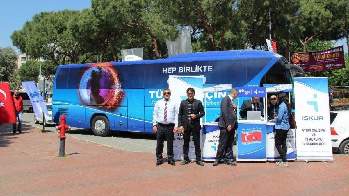 Çalışma ve İş Kurumu (İŞKUR) Nazilli Şubesi, istihdam seferberliği projesi kapsamında stant açarak vatandaşları bilgilendirdi.İŞKUR Nazilli Şube Müdürü Muhammet Çamurcu, ilçeye gelen İŞKUR otobüsünün Türkiye’nin 81 ilini gezdiğini belirterek, “Stantlar kurarak Çalışma ve İş Kurumunun mesleki yönden yetişecek personel anlamında, işverenleri bilinçlendirmek anlamında yapılan bir çalışma. Böyle güzel bir etkinlik yaparak halkımızı bilinçlendiriyoruz. Meslek sahibi olmak isteyenleri ve üniversite mezunu gençleri yönlendiriyoruz. Yeni hayata atılacak olan gençleri iş sahibi yapmak adına böyle bir organizasyon düzenledik. Gayretlerimizin odağında, Türkiye’de 81 ilde Cumhurbaşkanımızın vermiş olduğu talimat doğrultusunda 2 milyon kişiyi hedef alan istihdam projesi için bir çalışma yürütüyoruz” dedi.Kurumun çalışmalarını tanıtmak için meslek danışmanları ile birlikte Nazilli’deki vatandaşları bilgilendirdiklerini söyleyen İŞKUR Nazilli çalışanı Barış Çelik, öncelikli hedeflerinin genç kesime faydalı olmak ve mesleki açıdan deneyim kazanmaları noktasında katkı sağlamak olduğunu kaydetti.