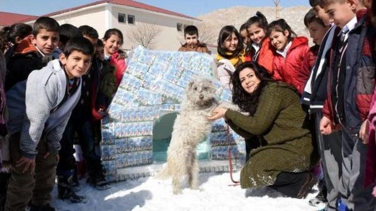 Murat ÇAĞLAR / VAN, Van Akköprü İlkokulu Sınıf Öğretmeni Yeliz Sevin öğrencilerine doğa ve hayvan sevgisini kazandırmak amacıyla farklı bir projeye imza attı. Milli Eğitim Bakanlığınca başlatılan 'Okul Sütü Projesi' kapsamında dağıtılan sütler içildikten sonra boş kutuları biriktirildi ve bir köpek kulübesi yapıldı. 1100 süt kutusundan yapılan kulübe, yaralı halde bulunan sonradan tedavi ettirilerek iyileşen sokak köpeğine yuva oldu.