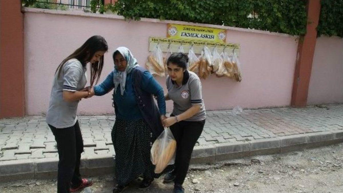 Siirt’te Zübeyde Hanım Mesleki ve Teknik Anadolu Lisesi öğrencileri, harçlıklarını biriktirerek, yoksul vatandaşların ekmek ihtiyacını karşılamak için “Ekmek Askısı” projesi başlattı.Siirt’te Zübeyde Hanım Mesleki ve Teknik Anadolu Lisesi öğrencileri, Okul Müdürü İdris Yolbaş ve Okul Aile Birliği Başkanı Misbah Yılmaz’ın girişimleriyle “Ekmek Askısı” projesi başlattı. Öğrenciler, biriktirdikleri harçlıkla ekmek alarak, yoksul vatandaşların alması için askıya bıraktı.Yoksul vatandaşlarının gözetilmesinin manevi bir sorumluluk olduğunu dile getiren Okul Müdürü İdris Yolbaş, amaçlarının ihtiyacı olan yoksul ailelerin incitilip teşhir edilmeden ihtiyaçlarını gidermek olduğunu söyledi. Yolbaş, "Biz okul olarak eğitime önem verdiğimiz gibi aynı zamanda kültürel değerimizde var var olan yoksul vatandaşlarımıza yardım yapma bilincini öğrencilerimize aşılamak amacıyla bir proje geliştirdik. Bu proje Zübeyde Hanım Lisesi ekmek askısı projesidir. Öğrencilerimiz getirdikleri ekmekleri askıya asarak projeye destek veriyor. Böylelikle ihtiyaç sahipleri teşhir edilmeden, incitilmeden gelip ihtiyaçları kadar ekmeği alabilirler. Daha çok kişiye ulaşmak adına vatandaşlarında desteğini bekliyoruz. Emeği geçen tüm öğrencilerimi kutluyorum" dedi.Öğrenci arkadaşlarıyla sabah saatlerinde evden okula gelirken fırından sıcak ekmek aldıklarını belirten okulun 9’uncu sınıf öğrencilerinden Berfin Taş ise, harçlığıyla aldığı ekmeği yoksul vatandaşların alması için gönül rahatlığıyla askıya astığını söyledi.Okul öğrencisi Fatma Batum ise, "Okulumuz adına yapılan bu çalışmadan dolayı tüm vatandaşlarımızın desteğine ihtiyacımız var. Bu projeye destek veren başta okul müdürümüz İdris Yolbaş olmak üzere öğretmen, öğrenci ve velilerimize teşekkür ediyorum" diye konuştu.