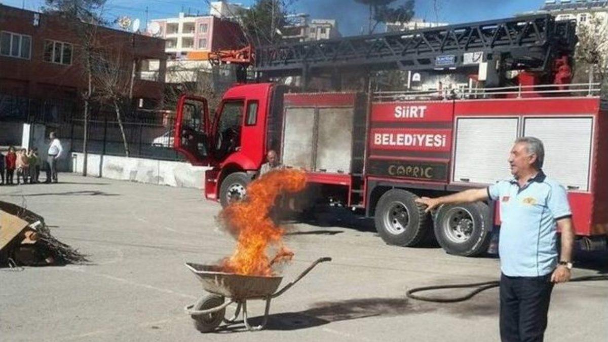 Siirt’te Sivil Savunma Haftası nedeniyle itfaiye tarafından okullarda yangın tatbikatı gerçekleştirildi.Salih Omurtak İlkokulu’nda düzenlenen tatbikatta olası bir yangına nasıl müdahale edileceği konusunda öğrencilere teorik bilgiler aktarıldı. Tatbikatı gerçekleştiren İtfaiye Amiri Misbah Yılmaz, yaşanabilecek doğal afetlere karşı herkesin bilinçli olması gerektiğini söyledi. Amaçlarının vatandaşları bilhassa öğrencileri yangın, deprem gibi benzeri afetler konusunda bilinçlendirmek olduğunu dile getiren Yılmaz, "Bu amaçla okullarımızda öğrencilerimize yönelik çalışmalar yapıyoruz. Bu tatbikatta da öğrencilerimize yangın ve deprem anında paniğe kapılmadan nasıl hareket etmeleri konusunda temel bilgileri verdik. Bazı uygulamalar gerçekleştirdim. Öğrencilerimiz çok değişik ve güzel sorular sorularak konuya duydukları ilgiyi gösterdiler” dedi.Yılmaz, benzer tatbikatların önümüzdeki günlerde diğer okullarda yapılacağını da kaydetti.