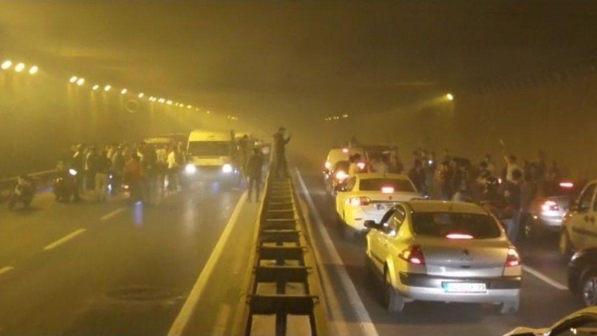 Sultanbeyli’de konvoyla geldikleri bir alt geçitte asker uğurlayan gençler, ellerindeki silahlarla alt geçitte etrafa ateş...