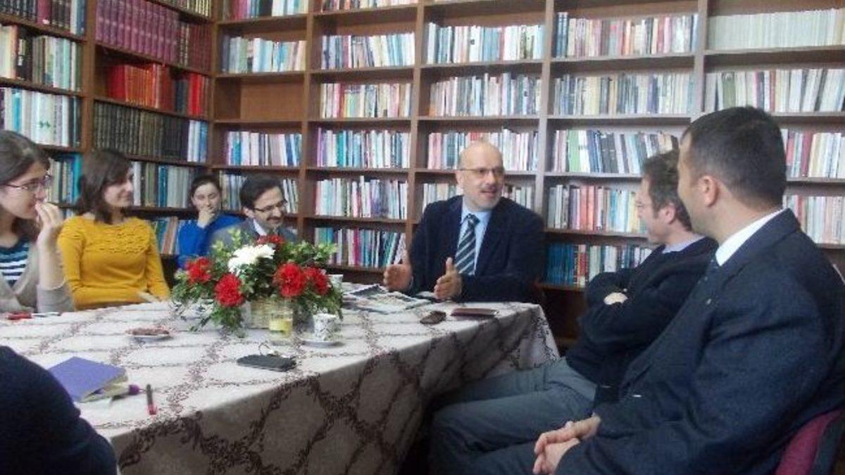 Yazı hayatına karikatür çizerek başlayan Prof. Dr. Hakan Poyraz, Sakarya Cemil Meriç Sosyal Bilimler Lisesi kütüphanesinde öğrenci ve öğretmenlerle mizahtan felsefeye, edebiyattan sanata geniş bir yelpazede zihin açıcı bir söyleşi gerçekleştirdi.