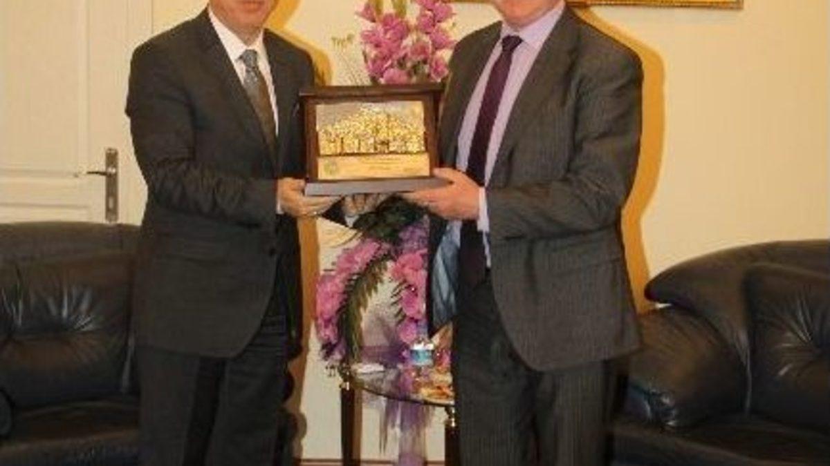 Rusya Federasyonu Karadeniz Ekonomik Topluluğu Rusya Ulusal Komitesi Başkanı Prof. Dr. Victor Arkhipov ve beraberindeki heyet, Kayseri Ticaret Odası Başkanı Mahmut Hiçyılmaz’ı makamında ziyaret etti.Ziyarette konuşan Kayseri Ticaret Odası Başkanı Mahmut Hiçyılmaz, Rusya’nın, Türkiye’nin ihracat yaptığı ülkeler arasında 6. sırada yer aldığını vurgulayarak, “Rusya’ya yaptığımız ihracat 2014 yılının ilk 6 ayında 5.6 milyar dolar. Fakat bizim Rusya’dan ithalatımız aynı dönemde 24 milyar dolar civarında. Tabi bizim Rusya’dan ithalatımızın bu kadar fazla olması petrol, kömür ve doğalgaz alımından kaynaklanmaktadır. Doğrudan yatırımlara baktığımızda Rusya’nın Türkiye’de 1.7 milyar dolar yatırımı var, Türkiye’nin de Rusya’da 1 milyar dolar civarında yatırımı söz konusu. Aynı zamanda Rusya’da yüze yakın firmamız iş yapmakta. Bu dengesizliği giderebilmek bakımından hem Türkiye’nin Kayseri’nin Rusya Federasyonu’na yaptığı ihracata baktığımızda 2014 yılının 11 aylık döneminde 25 milyon dolarlık ihracat yapmışız. Ama buna mukabil 10 milyon dolarlık da ithalat yapmışız, neredeyse dokuz katı. Tabi geçtiğimiz aylarda Rusya Devlet Başkanı Putin’in Türkiye’yi ziyaretinde cumhurbaşkanımızla yapmış olduğu görüşmede önümüzdeki süreçte Türkiye ile Rusya arasındaki ticaret hacminin 100 milyar dolara çıkarılacağı hususundaki görüşmeleri bizi heyecanlandırdı” ifadelerini kullandı. Kayseri olarak 2023 yılında 7 milyar dolarlık bir ihracat hedeflediklerini dile getiren Hiçyımaz, “Tabi Kayseri’de ithalatın daha da artması ve daha çok performans göstermesi bakımından yurt dışında temsilcilikler, ofisler açmak suretiyle Kayseri’nin ihracatının daha da artması ve hedeflemiş olduğumuz 7 milyar doların da üzerine çıkması konusunda çalışmalar yapıyoruz. Bu çerçevede biz, Moskova ile Kayseri arasında ticaret hacminin artırılması bakımından işbirliği içerisinde olmamız gerektiği kanaatindeyiz. Hangi sektörlerde karşılıklı ticaret hacmimizi artırabilme araştırması yaptıktan sonra bu karşılıklı heyet ziyaretlerinin çok önemli olduğunu düşünüyoruz. Çünkü Rusya ile Kayseri arasındaki ticaret hacminin çok dengesiz olduğu, 9 katı kadar olan dengesizliği bizim mutlaka gidermemiz gerekir. Biz eminiz ki Kayseri’den Rusya’ya ihracat yapabilecek potansiyelimiz var. Yeter ki karşılıklı görüşmeler neticesinde bir zemin hazırlayalım” dedi. Hiçyılmaz, yaz aylarında Türkiye’ye en çok gelen turistin Rusya’dan olduğunu söyleyerek, kış turizmi için de Erciyes’e Rus turist beklediklerini sözlerine ekledi. Ziyarette konuşan Rusya Federasyonu Karadeniz Ekonomik Topluluğu Rusya Ulusal Komitesi Başkanı Prof. Dr. Victor Arkhipov ise, ticari ilişkileri geliştirmek istediklerini belirterek, “Sizin kurumunuz ile bizim kurumumuz arasında ortak bağ var. Biz yurtdışında mal ihraç etmek istiyoruz, ticaret yapmak istiyoruz. Ticari ilişkileri geliştirmek istiyoruz. Bu bağlamda tabi ki de birlikte çalışmak isteriz. Bilindiği üzere Avrupa Birliği ve genellikle batı tarafından olan yaptırımlar sebebiyle şuanda Türkiye için Rusya’da çok geniş bir Pazar açıldı. Kumaş, tekstil ve birçok sektörde çok fırsat doğdu şuanda. Bu dengesizliği gidermek için daha sıkı çalışmak için çalışmalar yaptık” diye konuştu.Ziyarette Arkhipov’un yanı sıra Rusya Federasyonu Karadeniz Ekonomik Topluluğu Rusya Ulusal Komitesi Temsilciliği Türkçe/Rusça Uluslararası İlişkiler Koordinatörü İgor Cisa, Rusya Federasyonu Karadeniz Ekonomik Topluluğu Rusya Ulusal Komitesi Türkiye Temsilcisi Erdoğan Gündüzpolat ve Senexpo Başkanı Özer Çetin Şenyurt da hazır bulundu.
