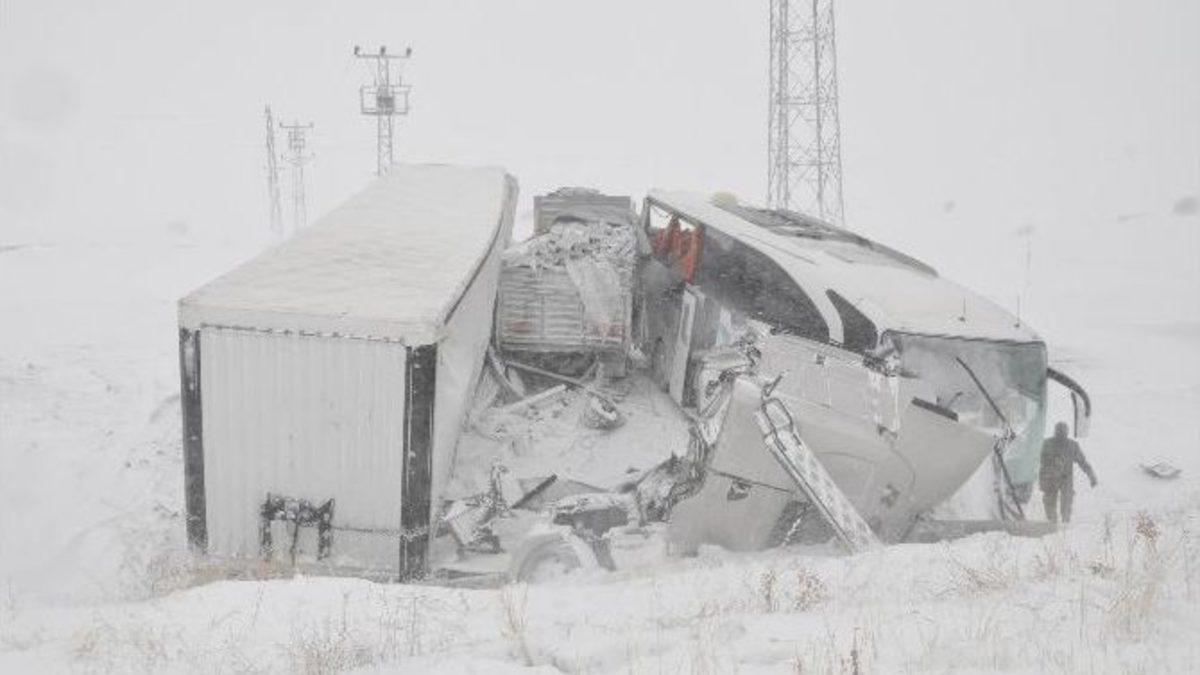 Sivas’ın Kangal ilçesinde buzlanma nedeniyle yolcu otobüsü ve TIR’ın karıştığı 5 araçlı zincirleme trafik kazasında 1’i ağır 15 kişi yaralandı.Edinilen bilgiye göre kaza, saat 09.30 sıralarında Kangal-Hekimhan karayolunun Abdalboğan mevkisinde meydana geldi. Tokat’tan Malatya istikametine giden Bekir Koşar yönetimindeki 60 AY 743 plakalı otobüs ile Zeki Ulumam idaresindeki 34 TK 0202 plakalı TIR, Sivas-Malatya karayolunun Abdalboğan mevkisinde kar ve tipi nedeniyle çarpıştı. Buzlanma nedeniyle duramayan Mehmet Fatih Gökçek idaresindeki 58 TY 607 plakalı otomobil, Hasan Özyılmaz idaresindeki 41 LT 834 plakalı kamyon ile 44 HV 309 plakalı sürücüsü belirlenemeyen bir minibüs kazaya karıştı. Kaza ihbarı üzerine olay yerine AFAD, UMKE ekibi ve çok sayıda ambulans sevk edildi. Kaza ihbarı üzerine Sivas’tan yola çıkan UMKE ekibini taşıyan araç, Ulaş ilçesi çıkışındaki Tecer köprüsü mevkisinde buzlanan yolda devrildi. Kazada, bir UMKE görevlisi yaralandı. Hekimhan ilçesinden yola çıkan bir ambulans da kara saplandı.Olumsuz hava koşulları ve yoldaki buzlanma nedeniyle sağlık ekipleri güçlükle olay yerine ulaştı. Kazada sürücülerle birlikte araçlarda bulunan 15 kişi yaralandı. Yaralılar ambulanslarla Kangal Devlet Hastanesi’ne kaldırıldı. Burada ilk müdahalesi yapılan 3 kişi Sivas’a sevk edildi. Kazayla ilgili soruşturma başlatıldı.
