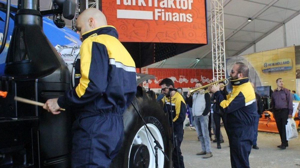 Bursa’da düzenlenen tarım fuarında, bir grup genç, 500 bin liralık traktörün parçalarına vurarak gösteri sundu. Traktöre vurarak çıkan sesle müzik yapan grubu vatandaşlar ilgiyle izledi.Şimdiye kadar birçok şeyle müzik yapılmıştı, ancak, Bursa’da tarım fuarında ise, gençler, traktöre vurarak ilginç bir konsere imza attı. Elerindeki çubukları traktörün çeşitli yerlerine vurarak istedikleri şarkının ritmini yakalayan grubu fuara katılanlar şaşkınlıkla izledi. Yapılan istekleri de kırmayıp çalan grup, vatandaşların büyük ilgisini çekti. Müzik grubunu izleyen vatandaşlar, "Biz müziği çalgı aletleriyle yapılıyor biliyorduk. Burada gençler traktörden ses çıkararak müzik yapıyor. Bize çok ilginç geldi" dediler.