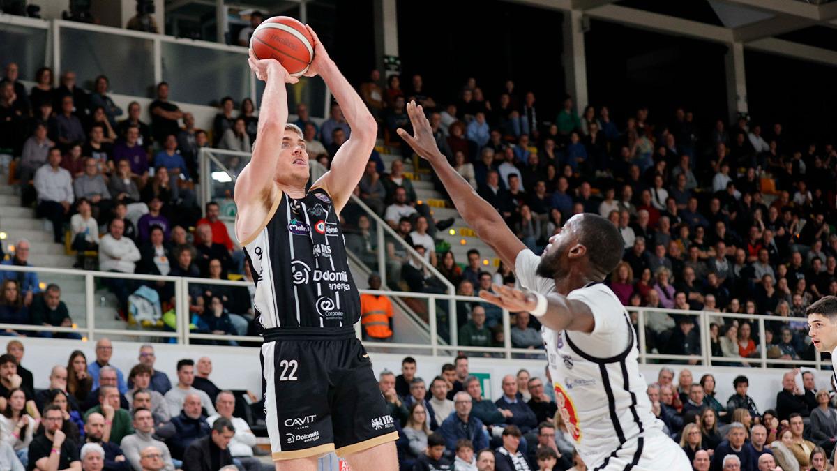 Dolomiti Energia Trento: Steward 8, Jones 14, Aldridge 16, Jakimovski 6, Bayehe 10, Battle 12, Jogela 16, Mawugbe 2, Hassan 2