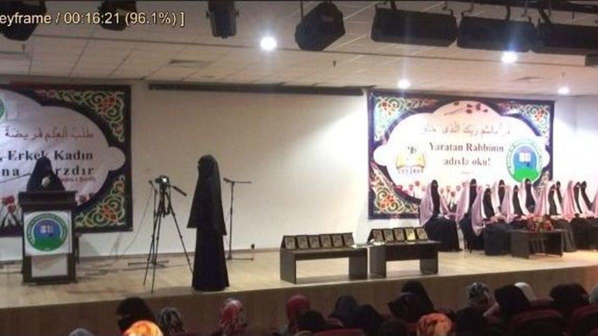 Van’da, Alimler ve Medreseler Birliği (İTTİHAD) bünyesinde İslami ilimlerini tamamlayan 11 alime kız düzenlenen törenle icazet belgelerini aldı.Van Merkez İmam Hatip Lisesi konferans salonunda düzenlenen törende İslami ilimlerini tamamlayarak icazet almaya hak kazanan 11 âlime kız için icazetleri verildi.Geçtiğimiz yıl 7 kız öğrencinin icazet almasının ardından, bu yıl da Âlimler ve Medreseler Birliği (İTTİHAD) tarafından, İslami ilimler alanında verilen eğitimlerini tamamlayarak icazet almaya hak kazanan 11 âlime kıza plaket ve icazetleri verildi.İTTİHAD tarafından Türkiye genelinde bazı illerde 2013 yılında 41 alime, 2014’te ise 144 alime icazet almıştı. Bu yıl ise yurdun çeşitli illerinde 78 medrese öğrencisi daha medrese eğitimini tamamlayıp icazet aldı.Program Kur’an-ı Kerim tilavetiyle başladı. Esma-ul Hüsna, ilahi ve ezgilerin ardından selamlama konuşmasını yapan Nurhayat Sivi’nin konuşmasının ardından kürsiye çıkan Nurten Özer, “Bizler bu karanlık asırda rabbimizin davetine icabet ederek yola koyulduk. Bu yolda kardeş olduk, bacı olduk. Bazen Ensar, bazen Muhacir olduk. Bazen Yasin, Hasan, Hüseyin, Riyad ve Turan olup balkonlardan atılıp bedenlerimiz çiğnenip yakıldı. Karlıovalı Cengiz Tiryaki ve Fethi Yalçınlar olup hayin kurşunların hedefi olduk. Bazende zincirlere, prangalara vurulup Yusuflar olduk. Bazen medreselere kapandık seyda ve talebe olduk. Müslümanlara sesleniyorum. Geleceğimizin en büyük teminatı, medrese ve ilim meclisleridir. Bölgemizin huzur ve selameti, bu ilim meclislerinde yetişecek Kur’an-i bir nesil ile mümkündür. Aklın, neslin, namusun, can ve malın ifsattan korumanın tek yolu, Allah korkusunu ve insan sevgisini aşılayan İslam-i ilimlerdir. Gelin hep beraber medrese ve ilim meclislerimizi ihya edelim. Bu yolda say ve gayret gösterenlere destek verelim" dedi.Konuşmaların ardından program tiyatro, plaket ve icazet verilmesi ve dua ile son buldu.