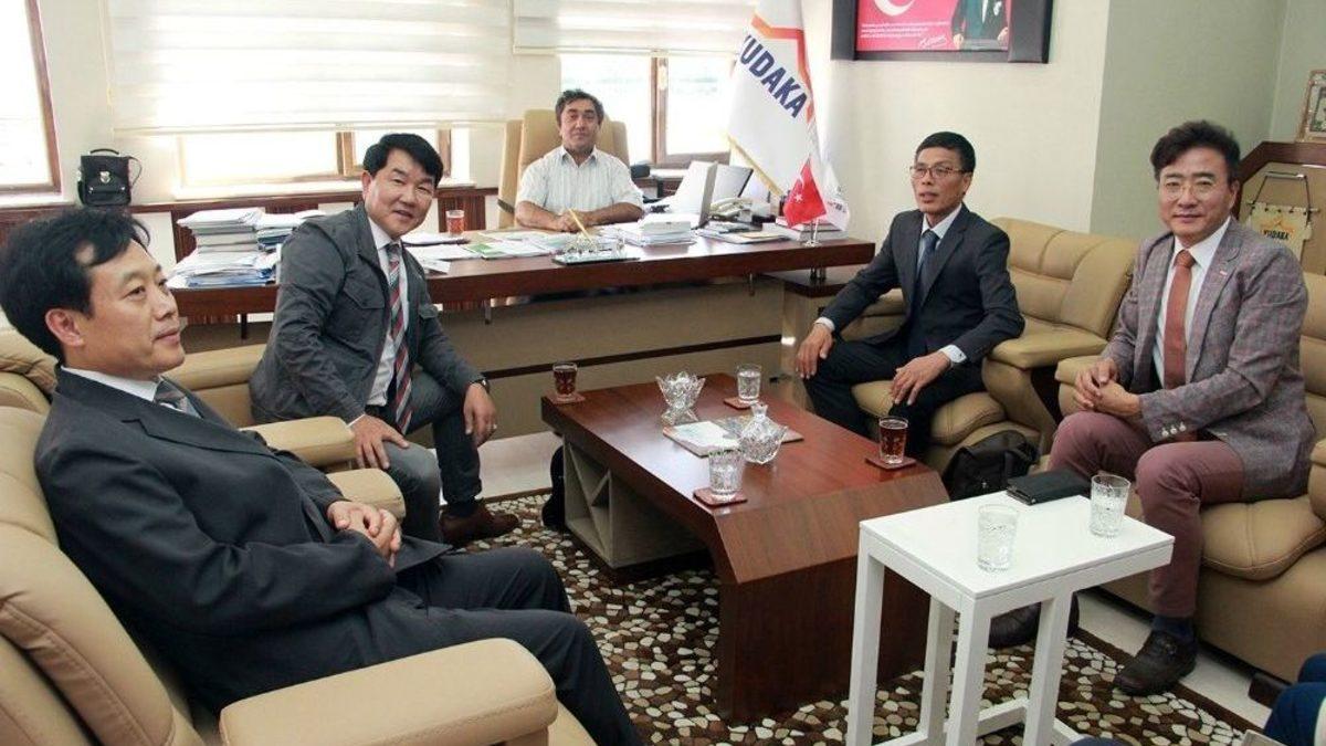 Güney Koreli işadamlarından oluşan ve ticari işbirlikleri yapmak üzere Erzurum’da temaslarda bulunan heyet Kuzeydoğu Anadolu Kalkınma Ajansı’nı ziyaret etti.Ziyaret kapsamında KUDAKA Genel Sekreteri Prof. Dr. Osman Demirdöğen, Ajans hakkında bilgilendirmede bulunduktan sonra bölgemizin üstünlüklerine işaret etti. Daha sonrasında firmalara, Erzurum’un yatırım ortamı, potansiyelleri ve yatırıma sağlanan devlet yardımları konusunda KUDAKA Erzurum Yatırım Destek Ofisi ve Program Yönetim Birimi tarafından bilgilendirme sunumu gerçekleştirildi.Görüşmenin sonunda bölgede yatırım yapacak yatırımcılara izin ve ruhsat işlemleri, ülkemizdeki teşvik mekanizmaları, yerel yatırımcılarla irtibat konusunda KUDAKA’nın her türlü yardıma hazır olduğunun vurgusu yapıldı.