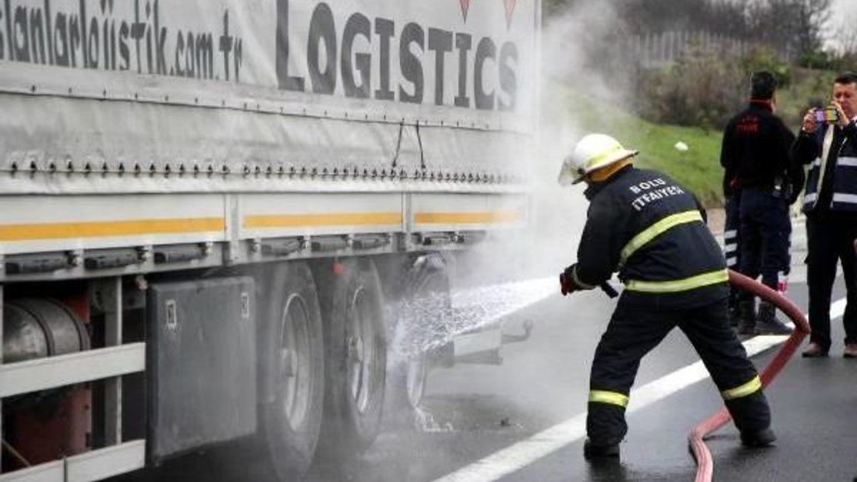 Mutlu YUCA-Taner BAYAR/BOLU, TEM Otoyolu'nda ilerleyen bir sürücü, Bolu Belediyesi İtfaiye Müdürlüğü'nü arayarak Köroğlu rampası mevkiinde kimyasal madde yüklü bir TIR'ın yandığını bildirdi. İhbarın ardından Bolu Belediyesi İtfaiye Müdürlüğü ekipleri bölgeye hareket ederken, ayrıca olay yerine polis ve 112 Acil ekibi de sevk edildi. Olay yerine ulaşan ekipler dorsesinin lastikleri tutuşan TIR'ı gördüler. Suriye'ye yardım malzemesi götüren Hasan Poyraz idaresindeki 27 YV 189 plakalı TIR'ın dorsesinin tutuşan lastikleri itfaiye ekiplerince kısa sürede söndürüldü. Ekiplerin müdahalesi sırasında İl Afet ve Acil Durum Müdürlüğü'nden de bir ekip bölgeye geldi. İhbarın asılsız olduğunun ortaya çıkmasıyla ekipler rahat bir nefes aldı.