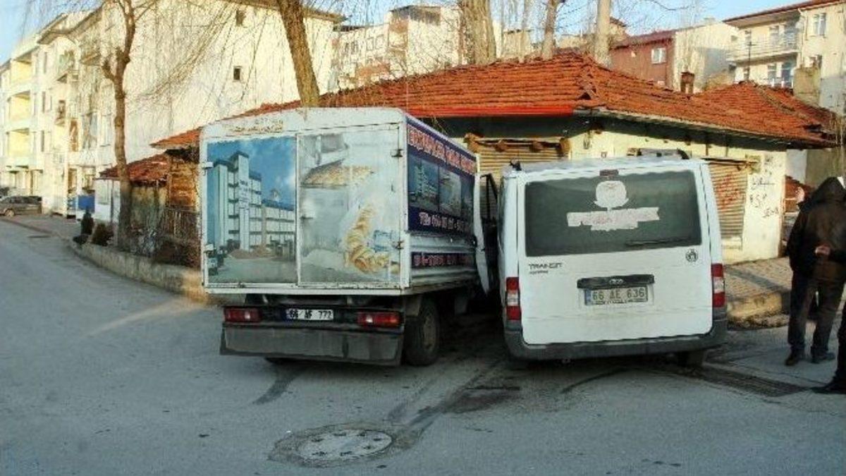 Yozgat’ta sabah bakkal ve marketlere ekmek yetiştirmeye çalışan iki ekmek arabası kavşakta çarpıştı. Kaza anı ise güvenlik kameralarına yansırken, her iki aracın şoförü de hafif yaralandı.Kaza, Yozgat Mevlana Caddesinde meydana geldi. Edinilen bilgiye göre, şehir merkezinden Yukarı Nohutlu Mahallesindeki bakkal ve marketlere ekmek götüren Ahmet Morgül yönetimindeki 66 AF 772 plakalı kamyonet, İmam Hatip Lisesi Kavşağında İmam Hatip Caddesinden gelen Recep Yıldız yönetimindeki 66 AE 636 plakalı ekmek taşıyan minibüs ile çarpıştı. Çarpışmanın etkisiyle araçlar bir eve çarparak durabildi. Kazada her iki aracın şoförü hafif şekilde yaralandı. Yaralılar Yozgat Devlet Hastanesine kaldırılarak tedavi altına alındı.Kazanın bir dakika geç olması ise oradan geçen öğrencilerin hayatını kurtardı.